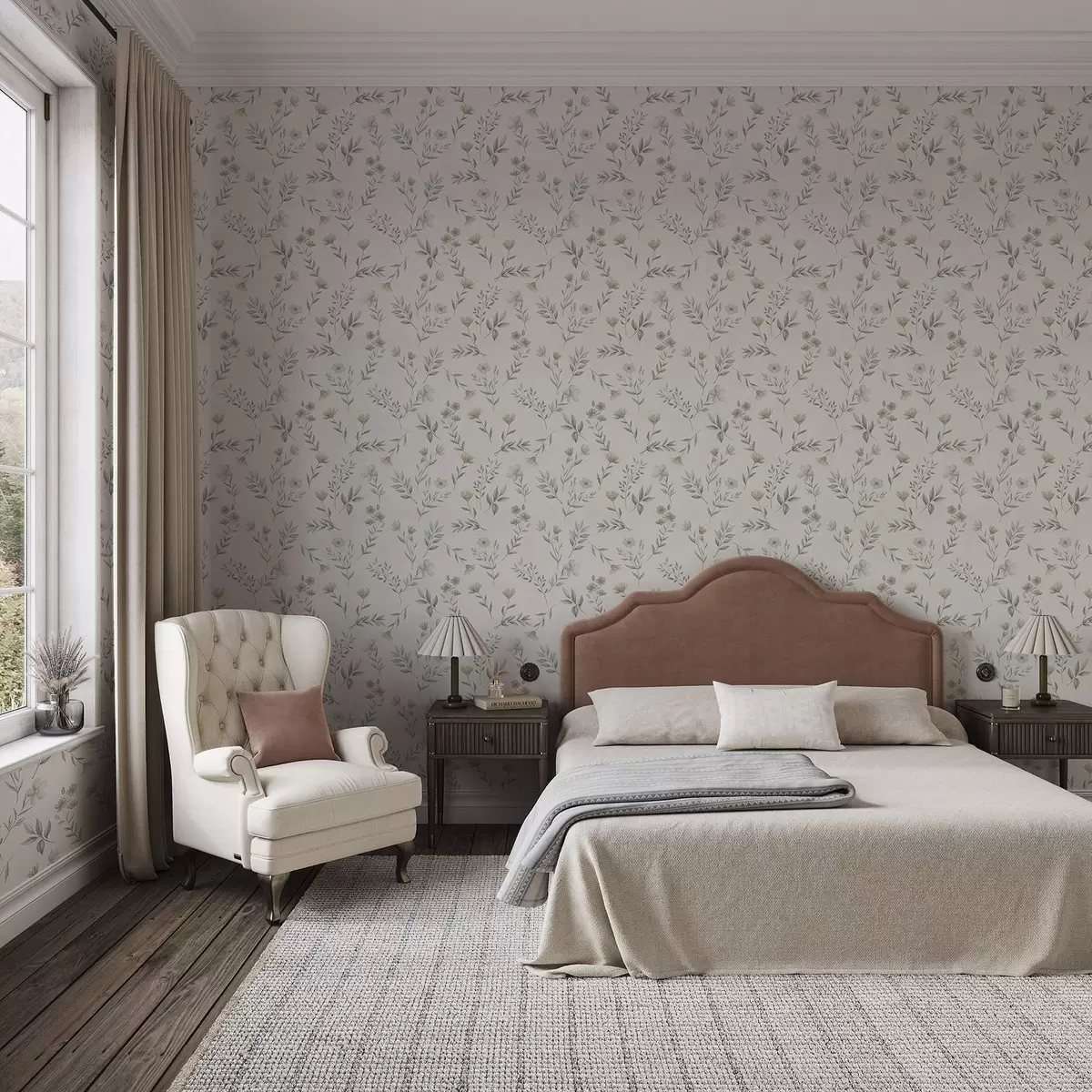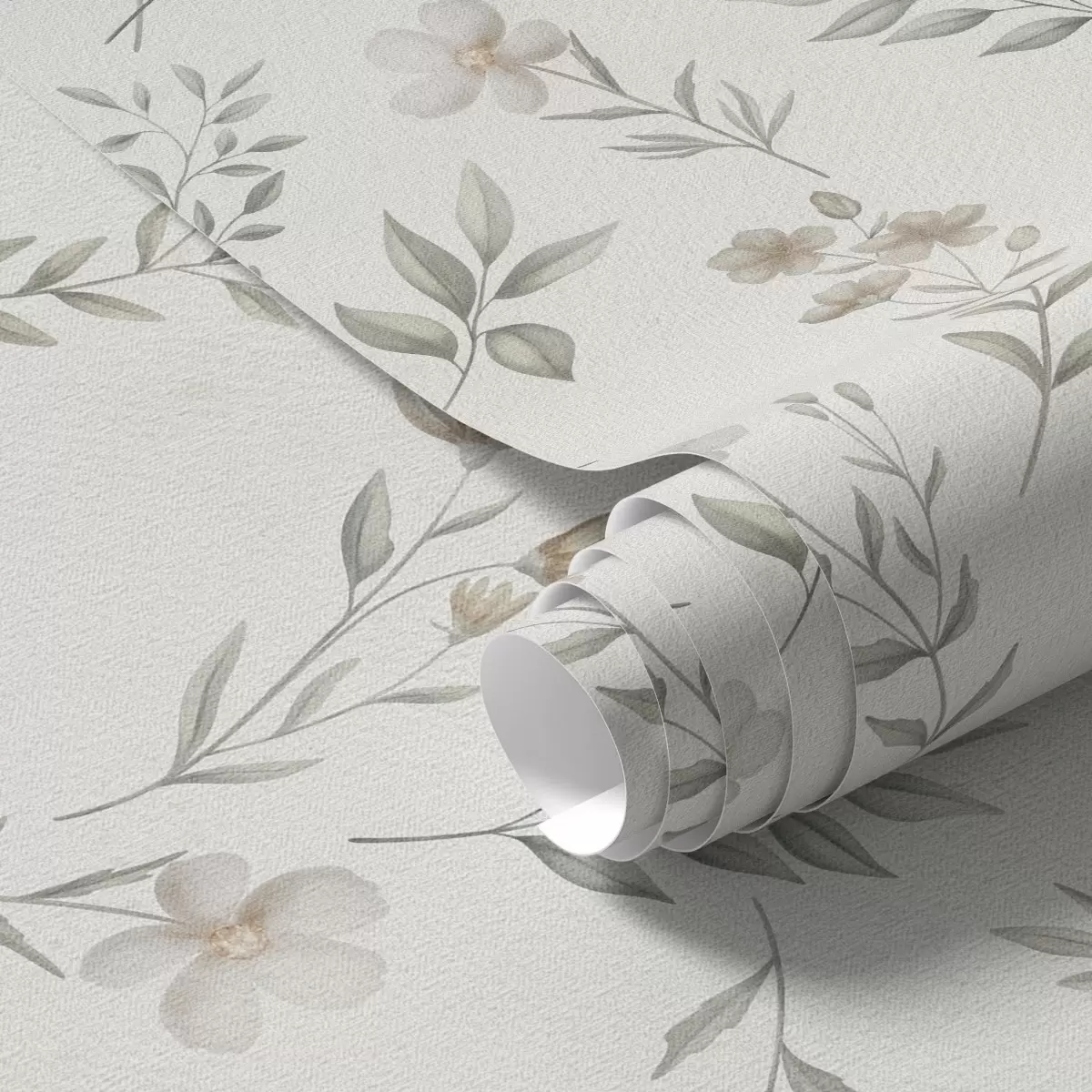 Tapete Kleine Aquarellzweige und Blumen auf hellem Hintergrund Nr. a00665