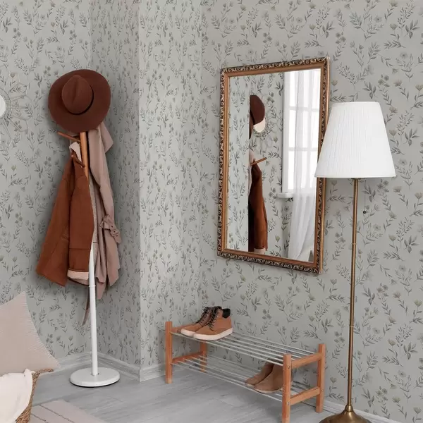 Tapete Kleine Aquarellzweige und Blumen auf hellem Hintergrund Nr. a00665
