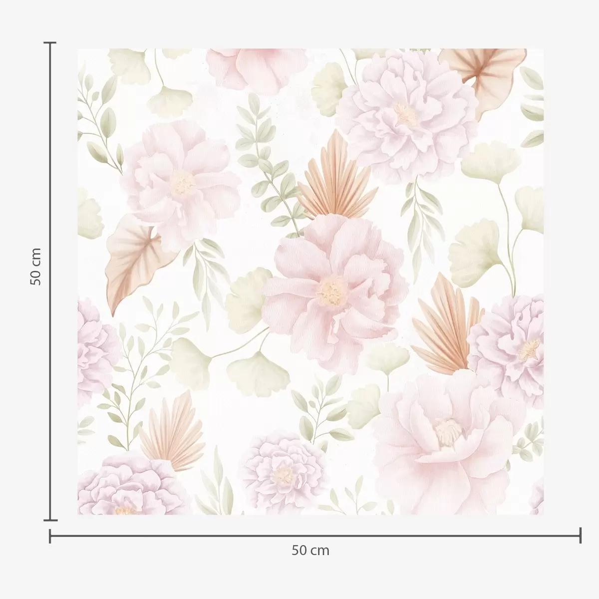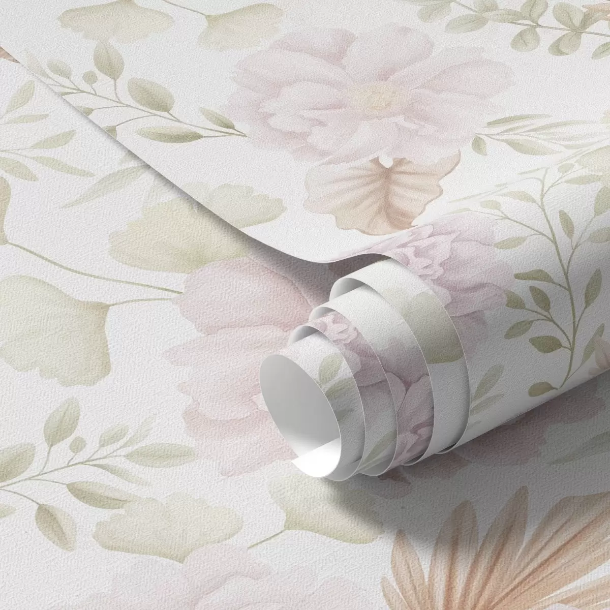 Tapete Zarte pastellfarbene Pfingstrosen und Blätter auf weißem Hintergrund Nr. a00669
