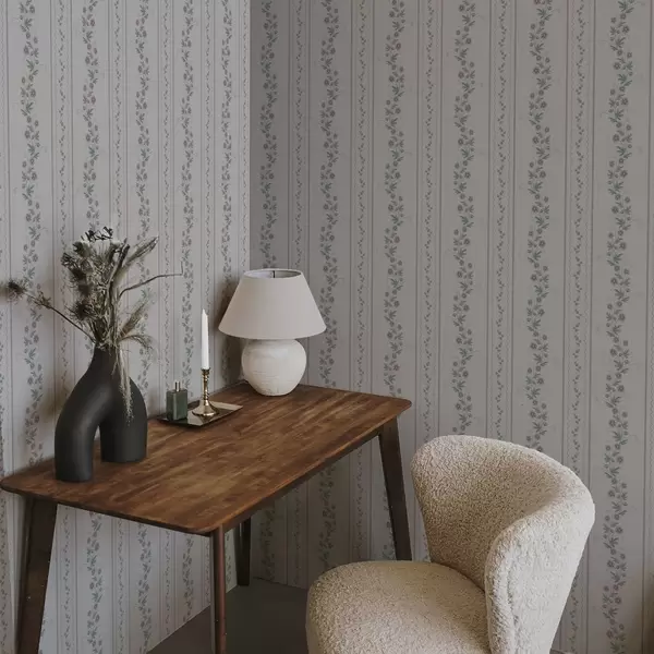 Tapete Zarte Streifen mit Lavendelblüten, Vintage Nr. a00671