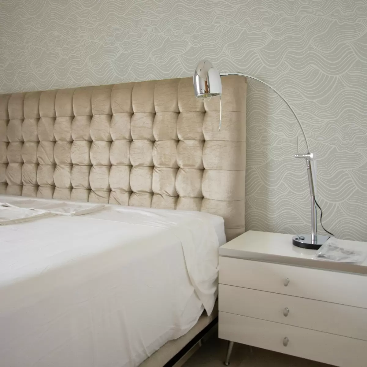 Tapete Wellen auf grau-olivem Hintergrund mit Stoffstruktur Nr. a00681