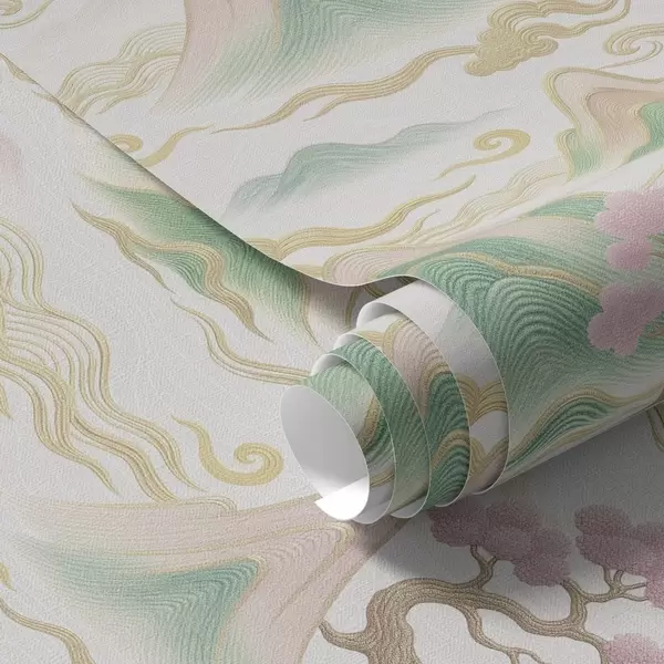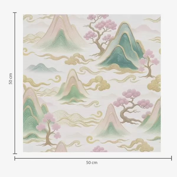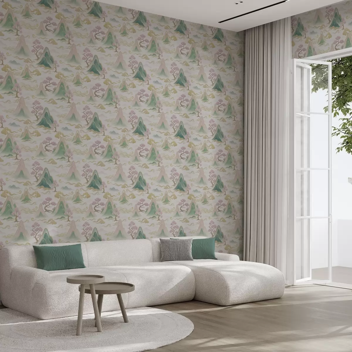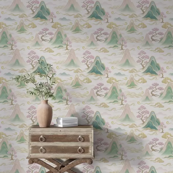 Tapete Berge, Wolken und Kiefern im orientalischen Dekorationsstil Nr. a00703