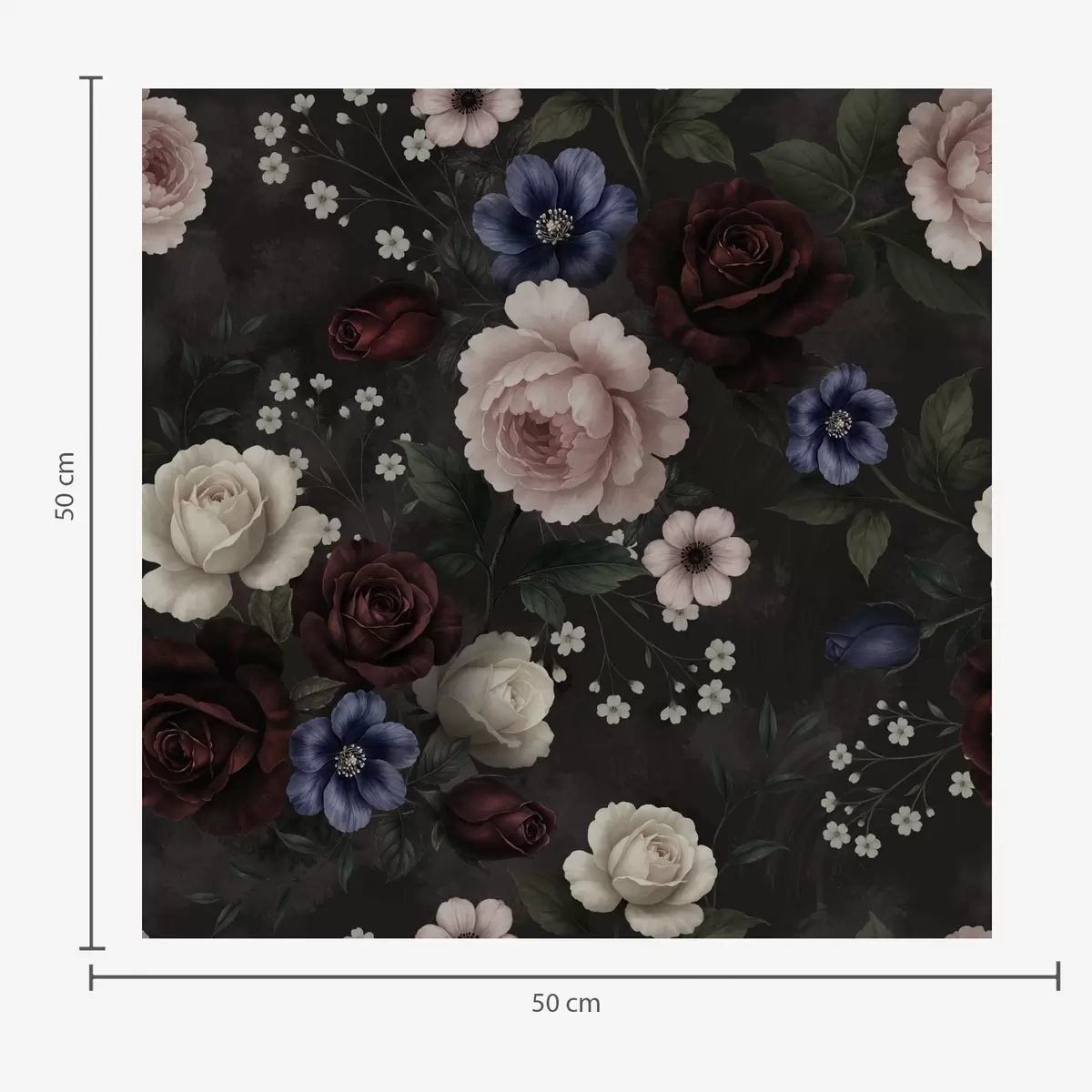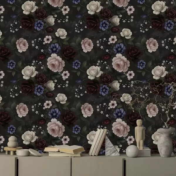 Tapete Dunkle Rosen, Anemonen und Pfingstrosen vor einem dunklen Hintergrund Nr. a00704