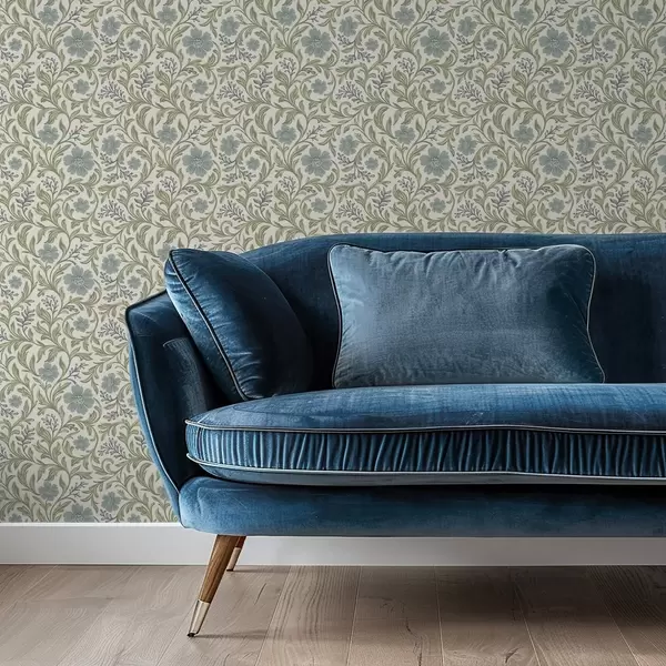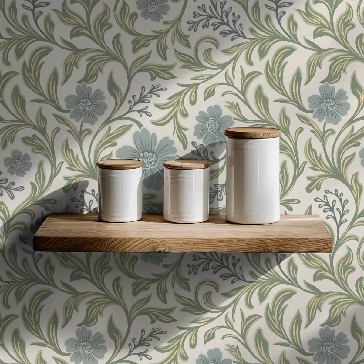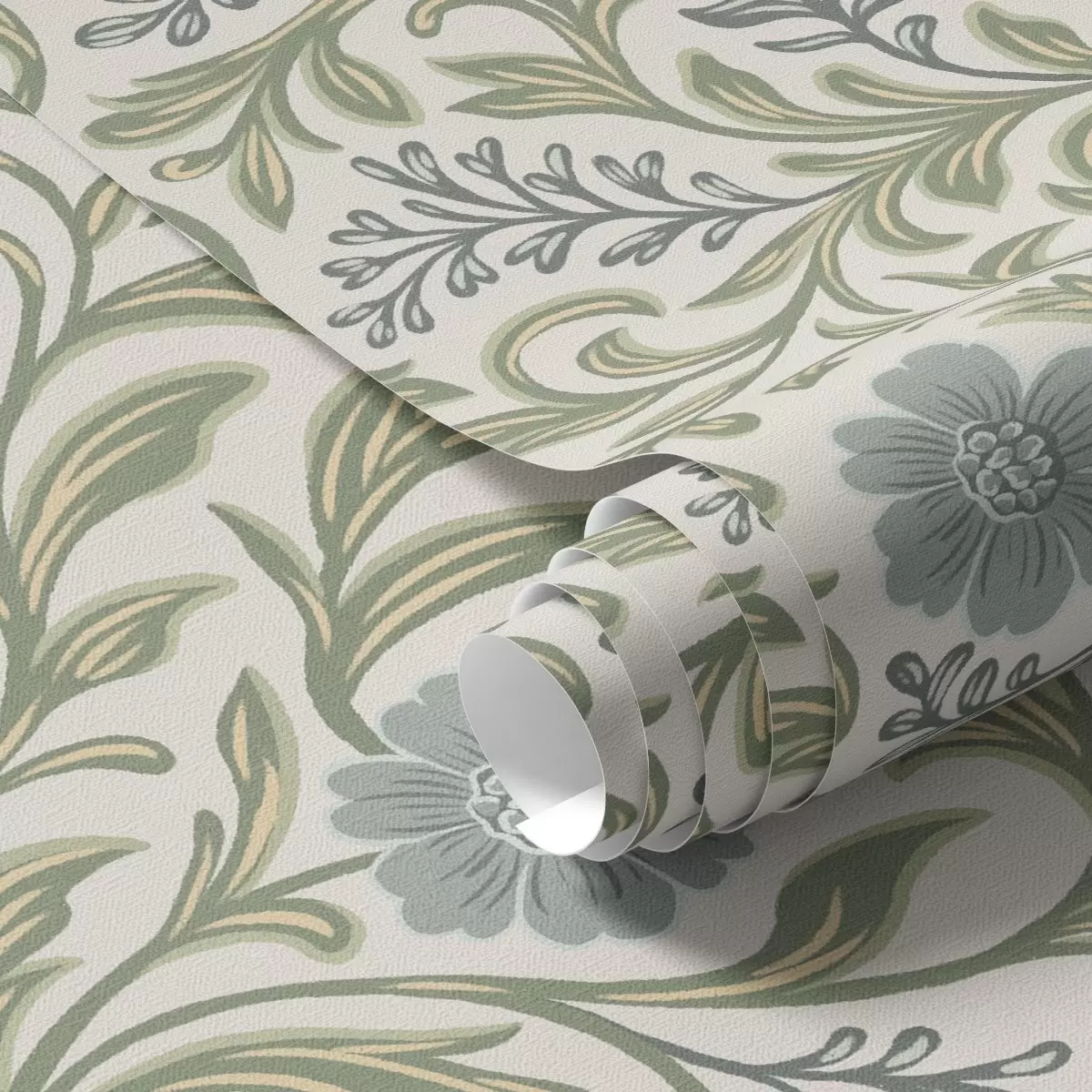 Tapete Salbeigraues Blumenornament auf hellem Hintergrund Nr. a00712