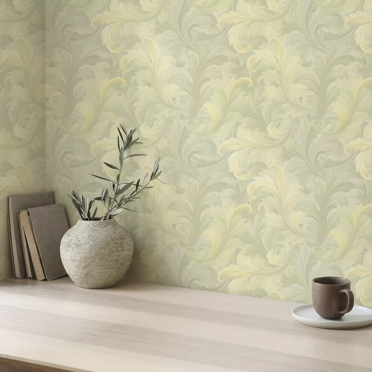 Tapete Barocke Akanthusranken in sanften Farbtönen Nr. a00714