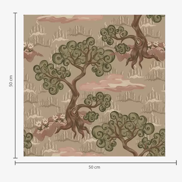 Tapete Östliche Landschaft mit skurrilen Bäumen auf sandigem Hintergrund Nr. a00715