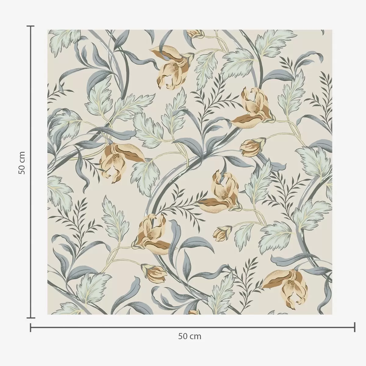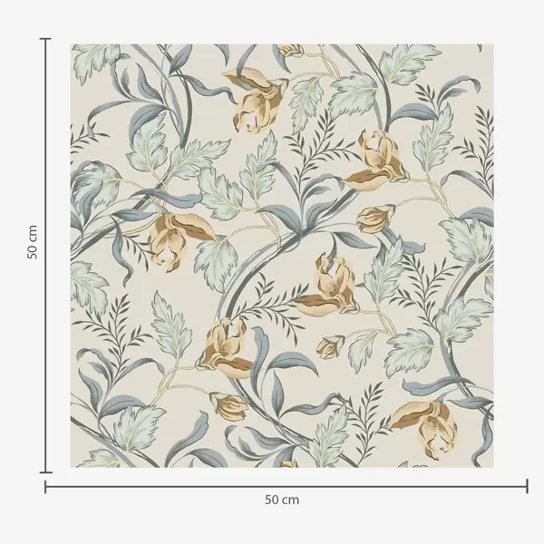 Tapete Vintage-Blumen mit blauem Laub auf cremefarbenem Hintergrund Nr. a00717