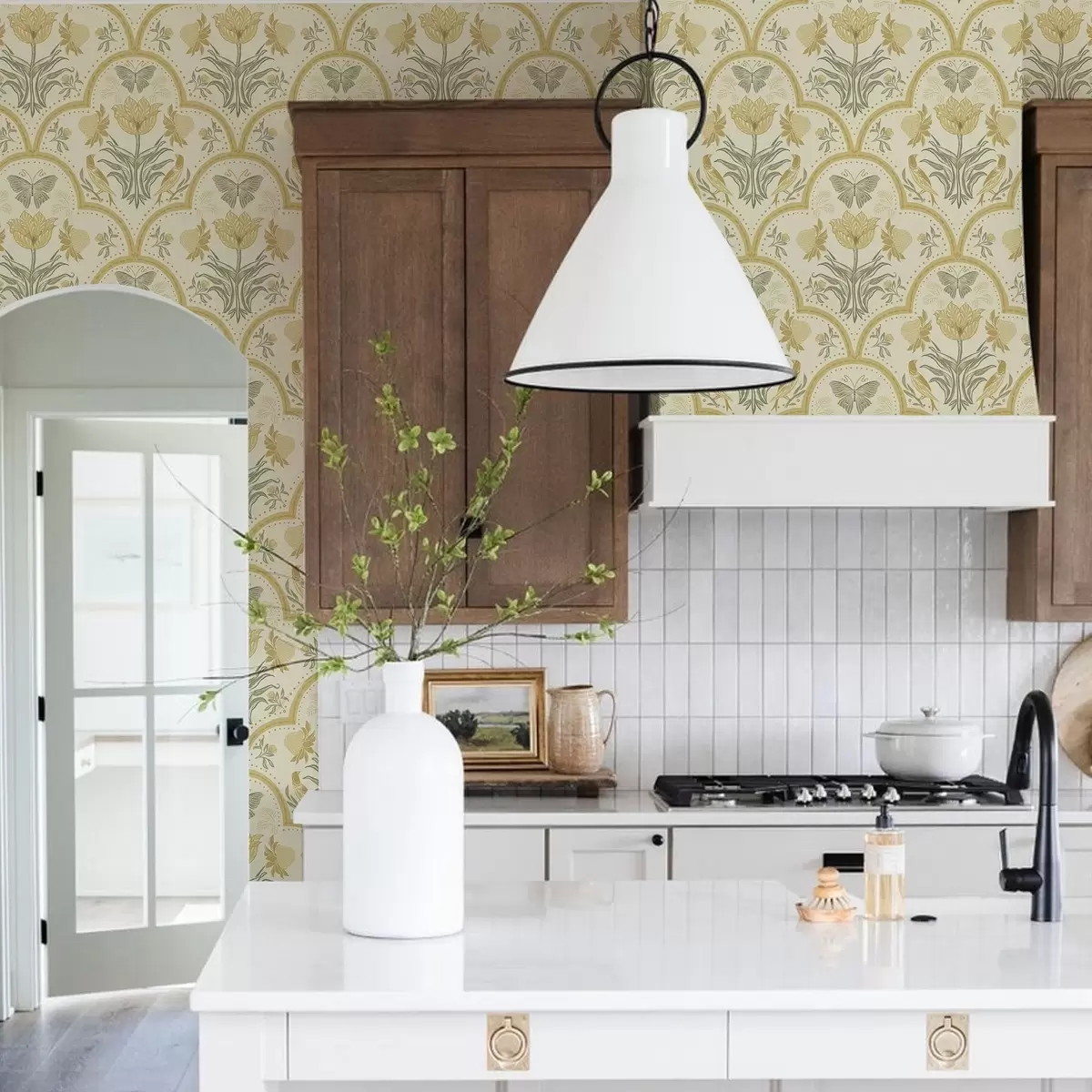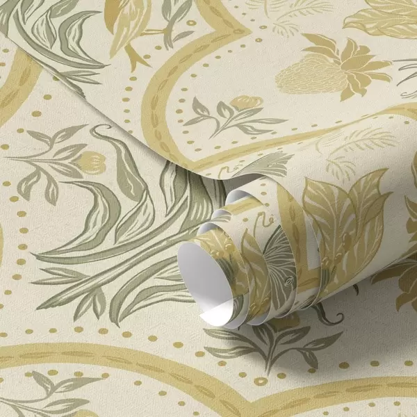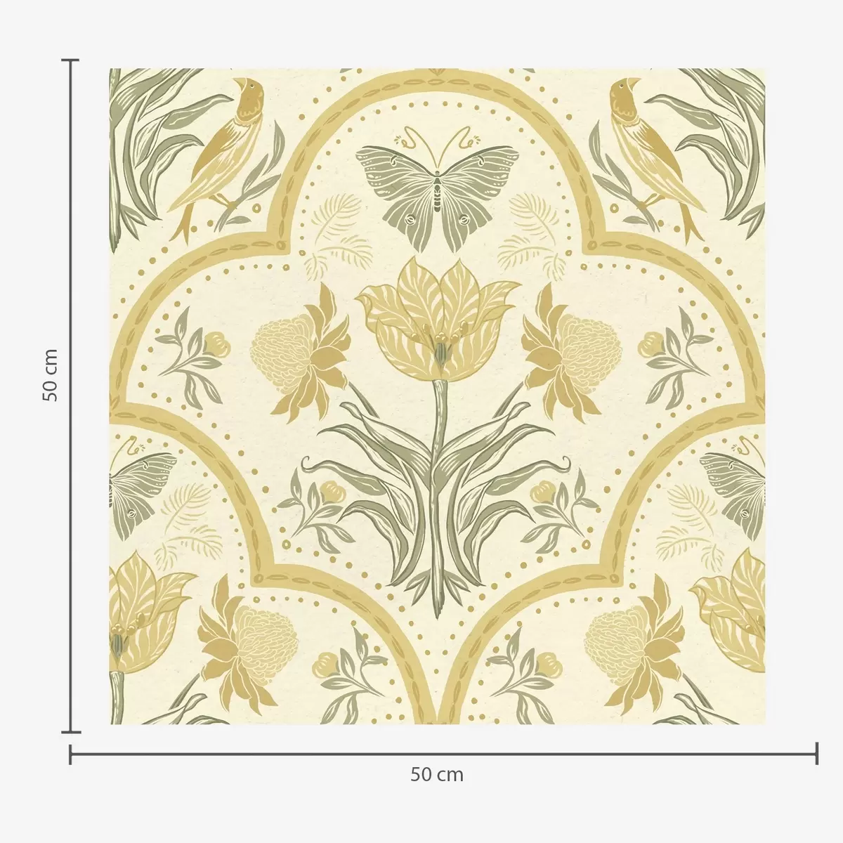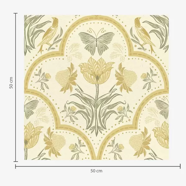 Tapete Ornament mit Tulpe, Vögeln und Schmetterlingen, ockerfarben Nr. a00722