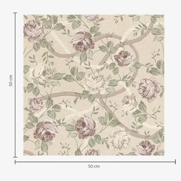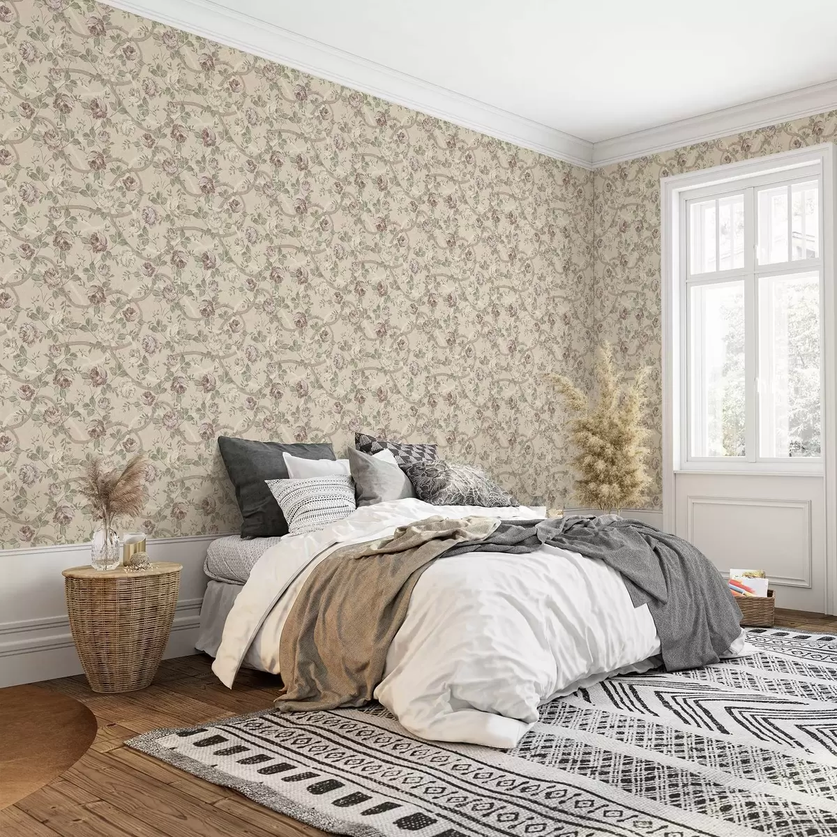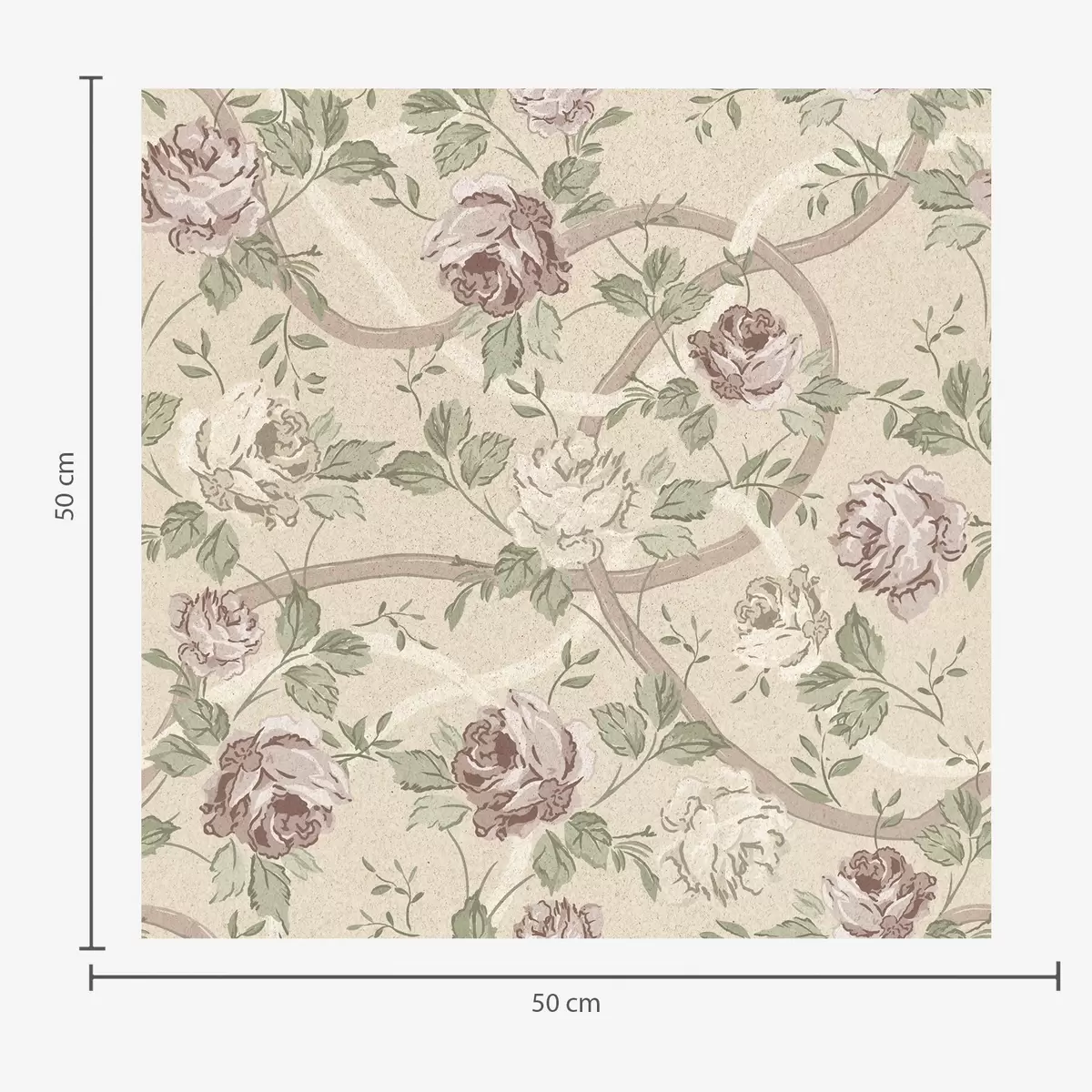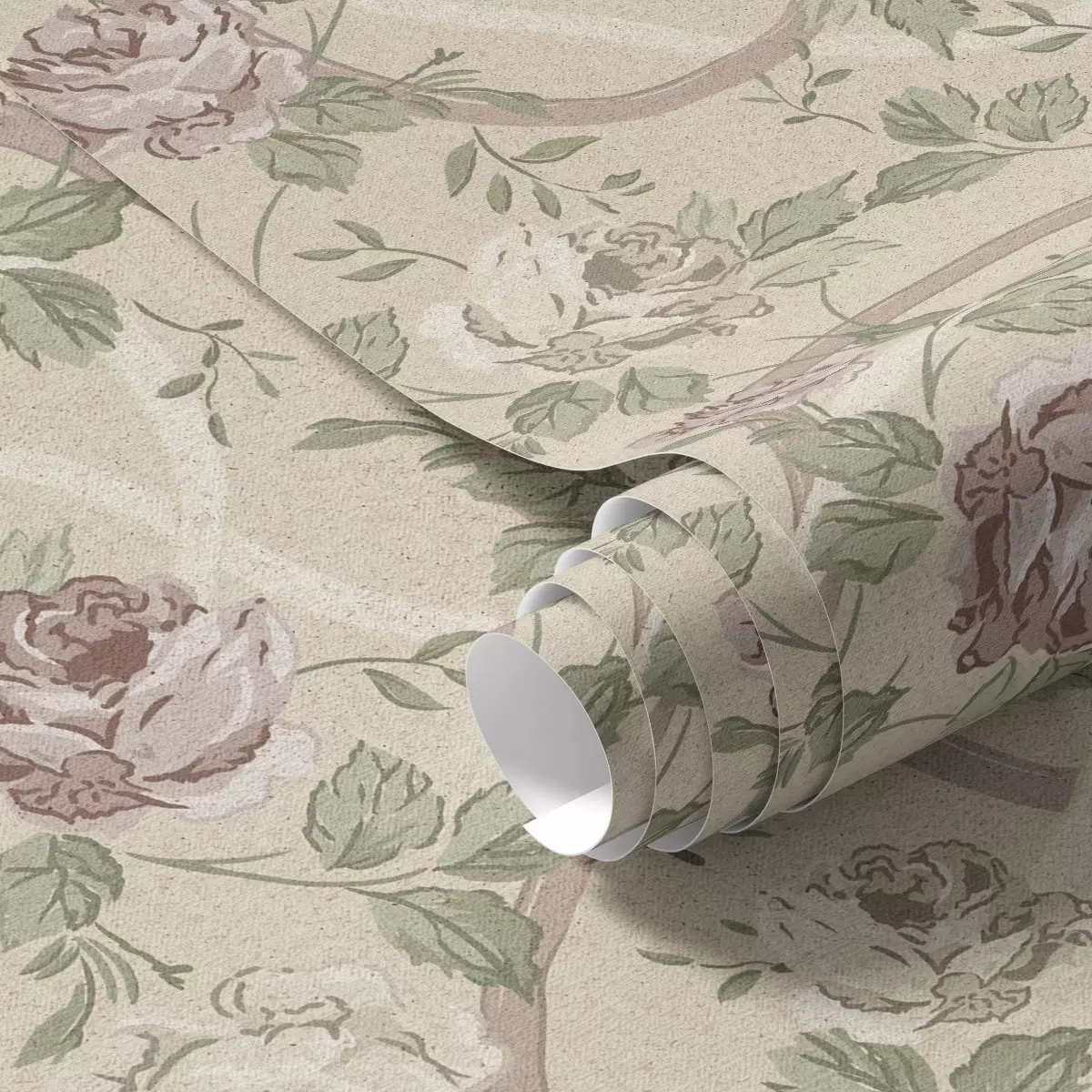 Tapete Rosen mit grünen Blättern auf warmem beigem Untergrund Nr. a00729