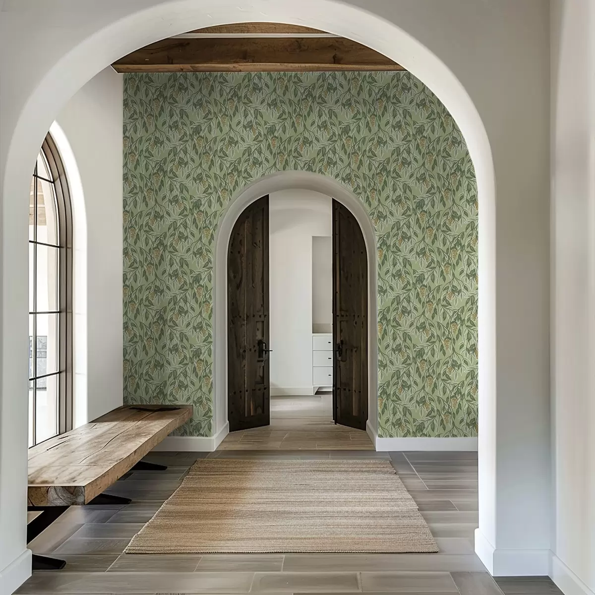 Tapete Zweige mit Beerenbüscheln auf grünem Hintergrund Nr. a00734