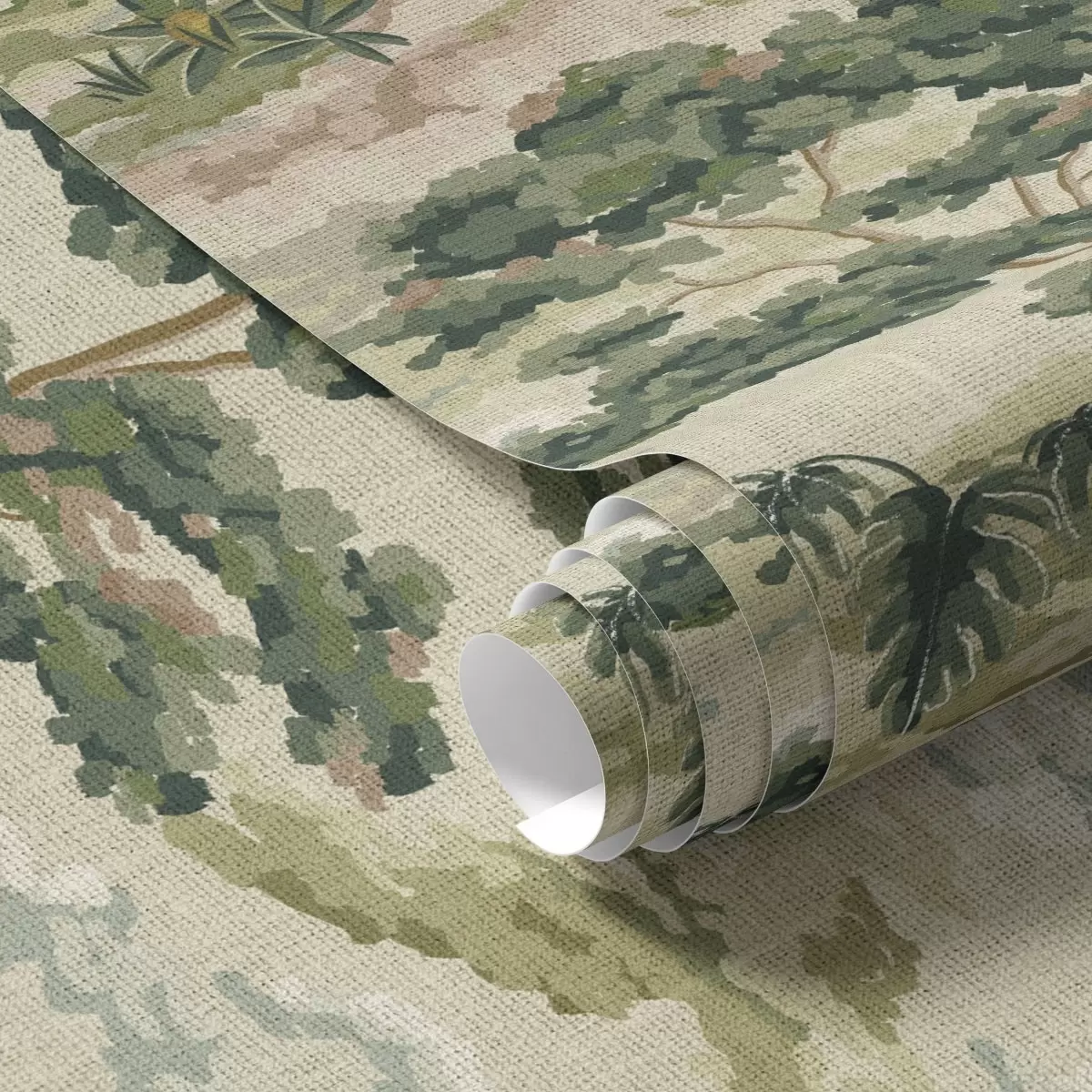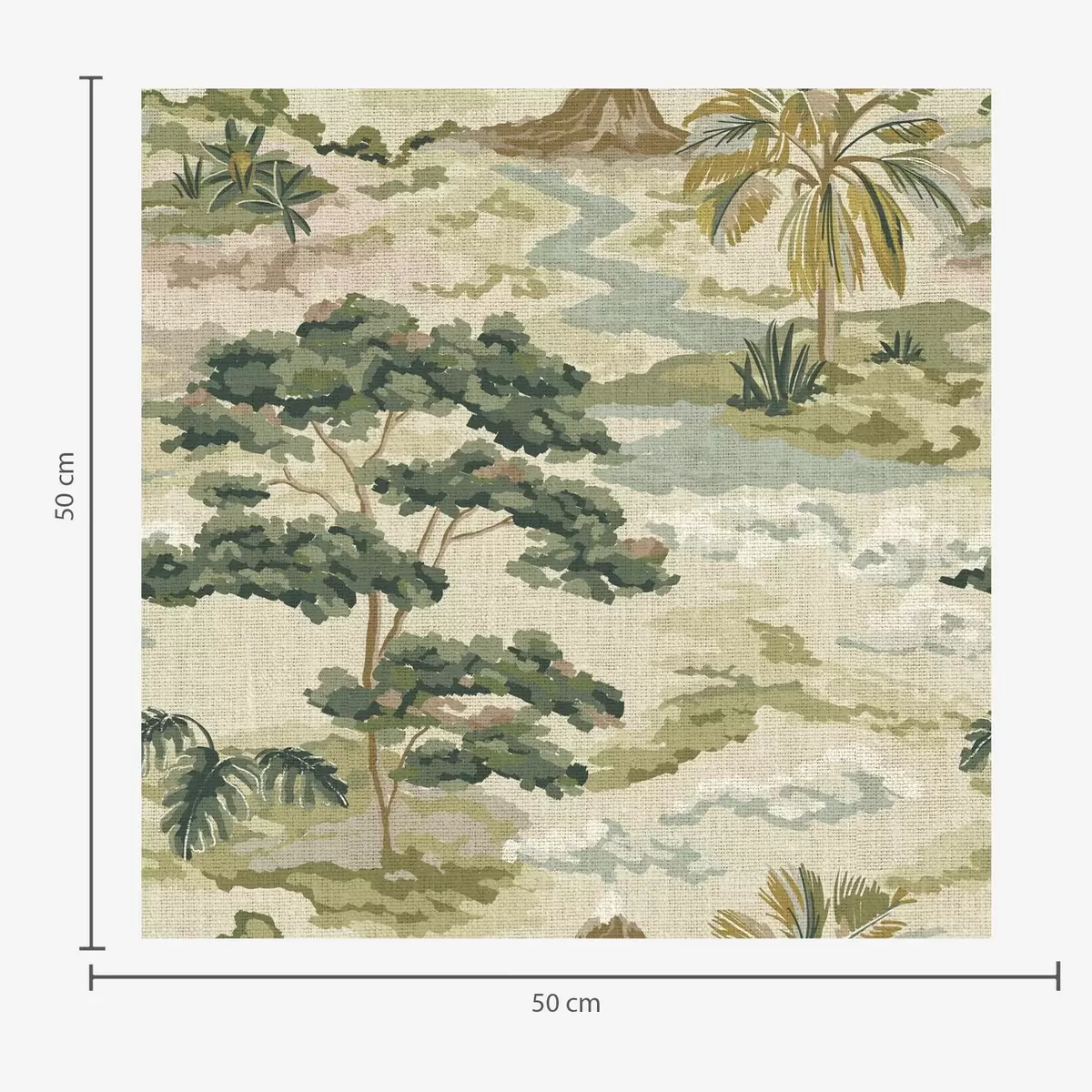 Tapete Landschaft mit Fluss, Bäumen und Palmen in sanften Farbtönen Nr. a00736