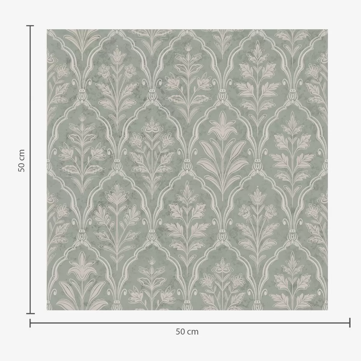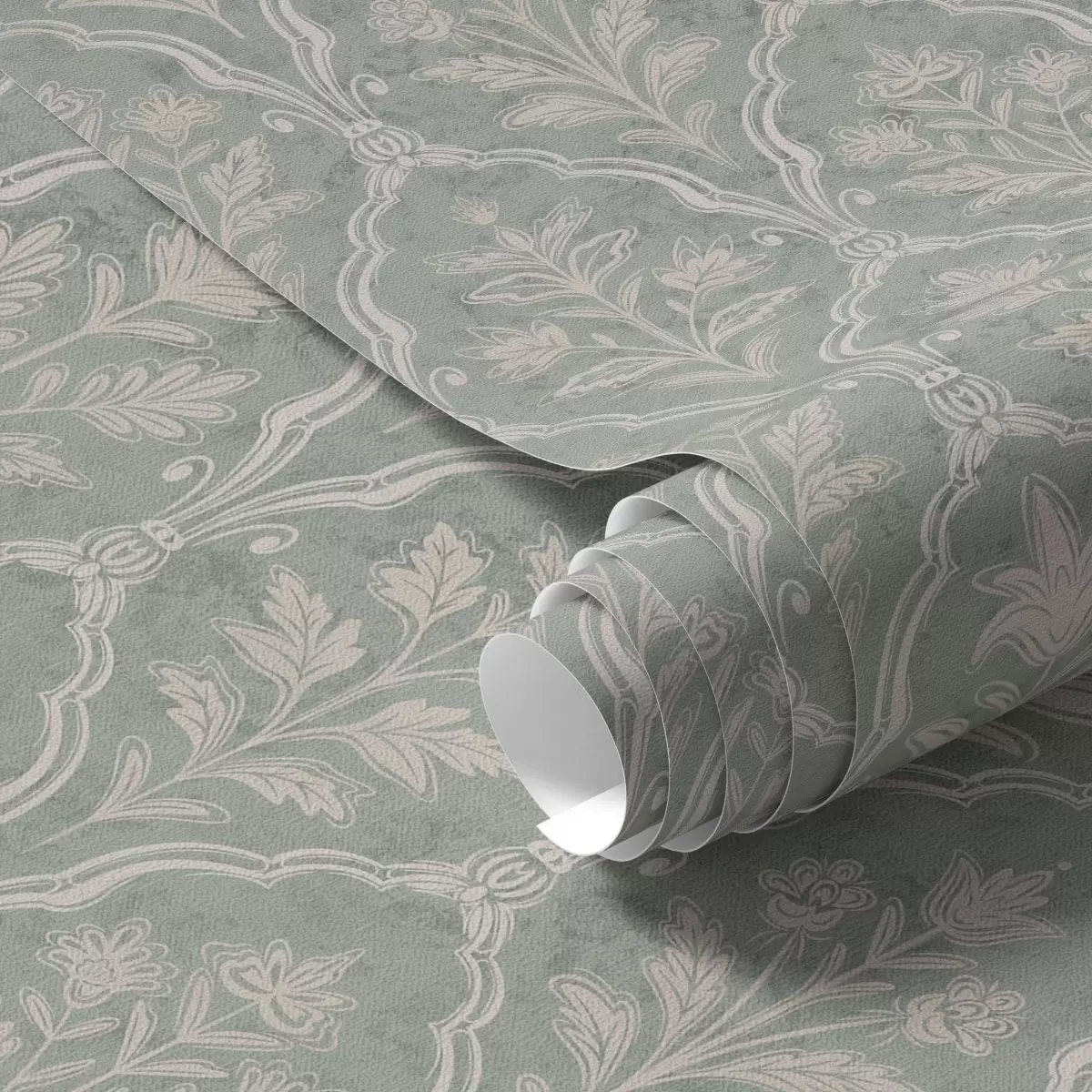 Tapete Minzfarbener Damast mit feinen Blumenmedaillons Nr. a00741