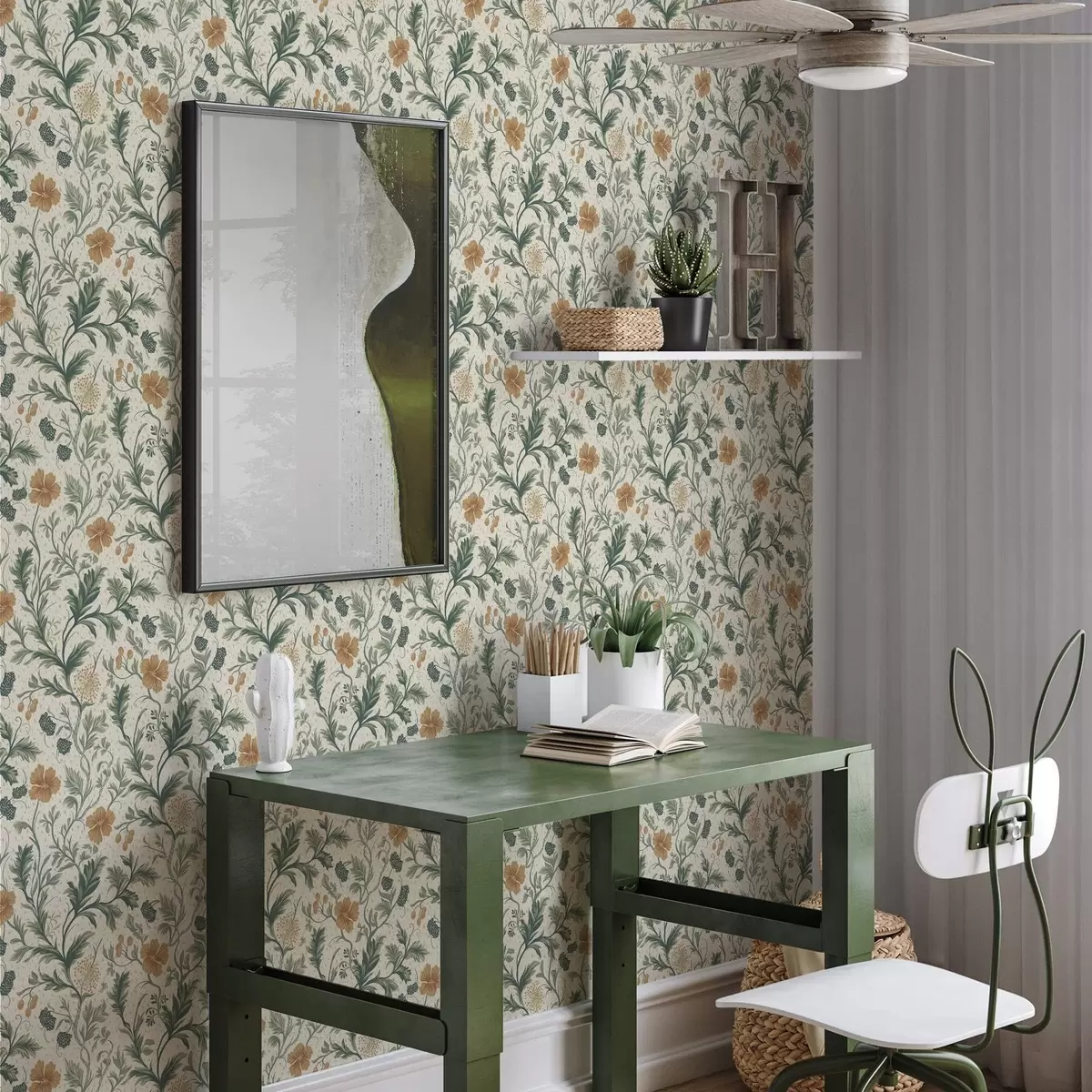 Tapete Dünne Zweige mit Blüten und Beeren auf körnigem Hintergrund Nr. a00744