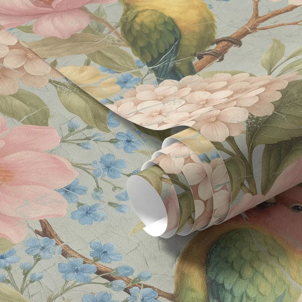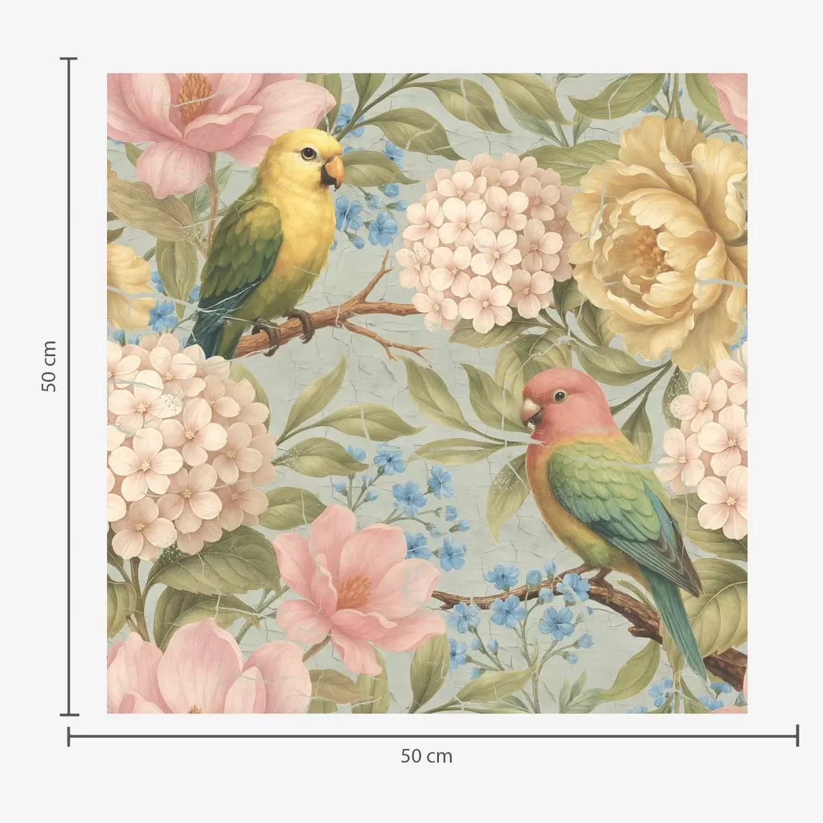 Tapete Papageien zwischen Pfingstrosen, Hortensien und Magnolien Nr. a00747