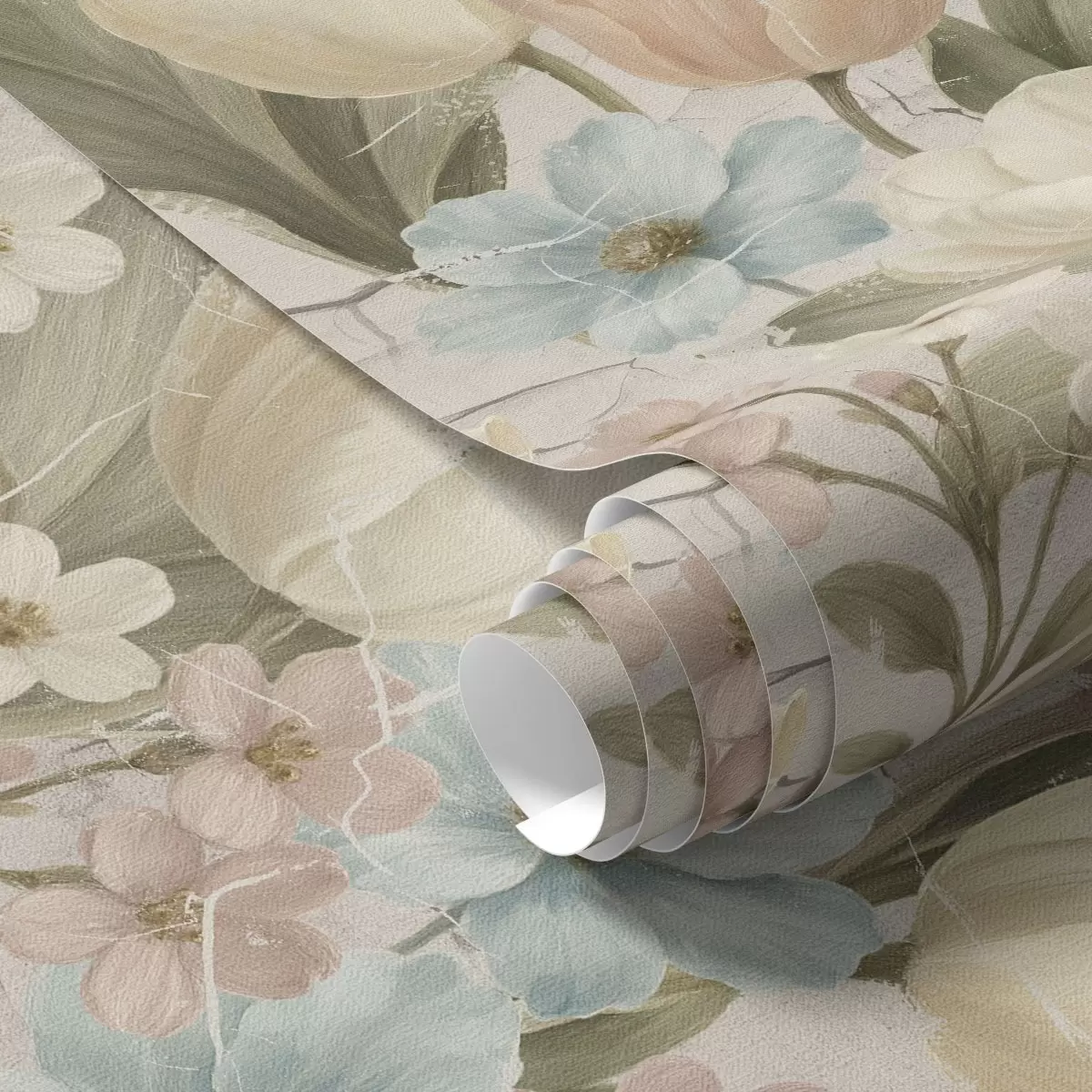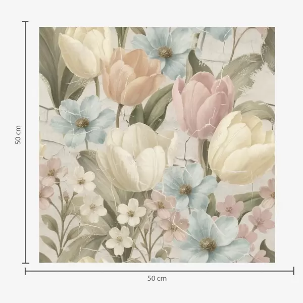 Tapete Pastellfarbene Tulpen und Blumen auf hellem, rissigem Hintergrund Nr. a00756