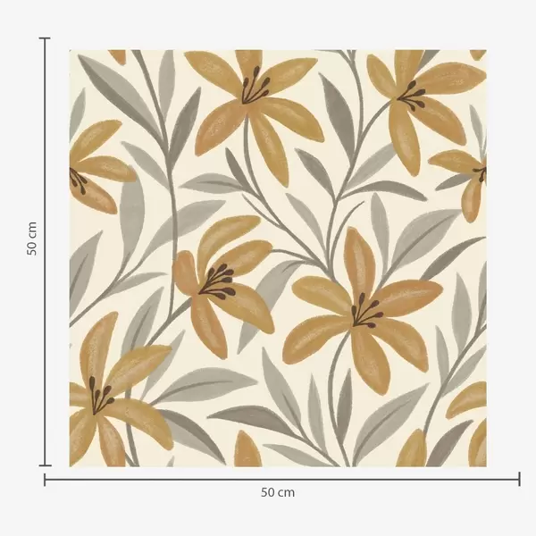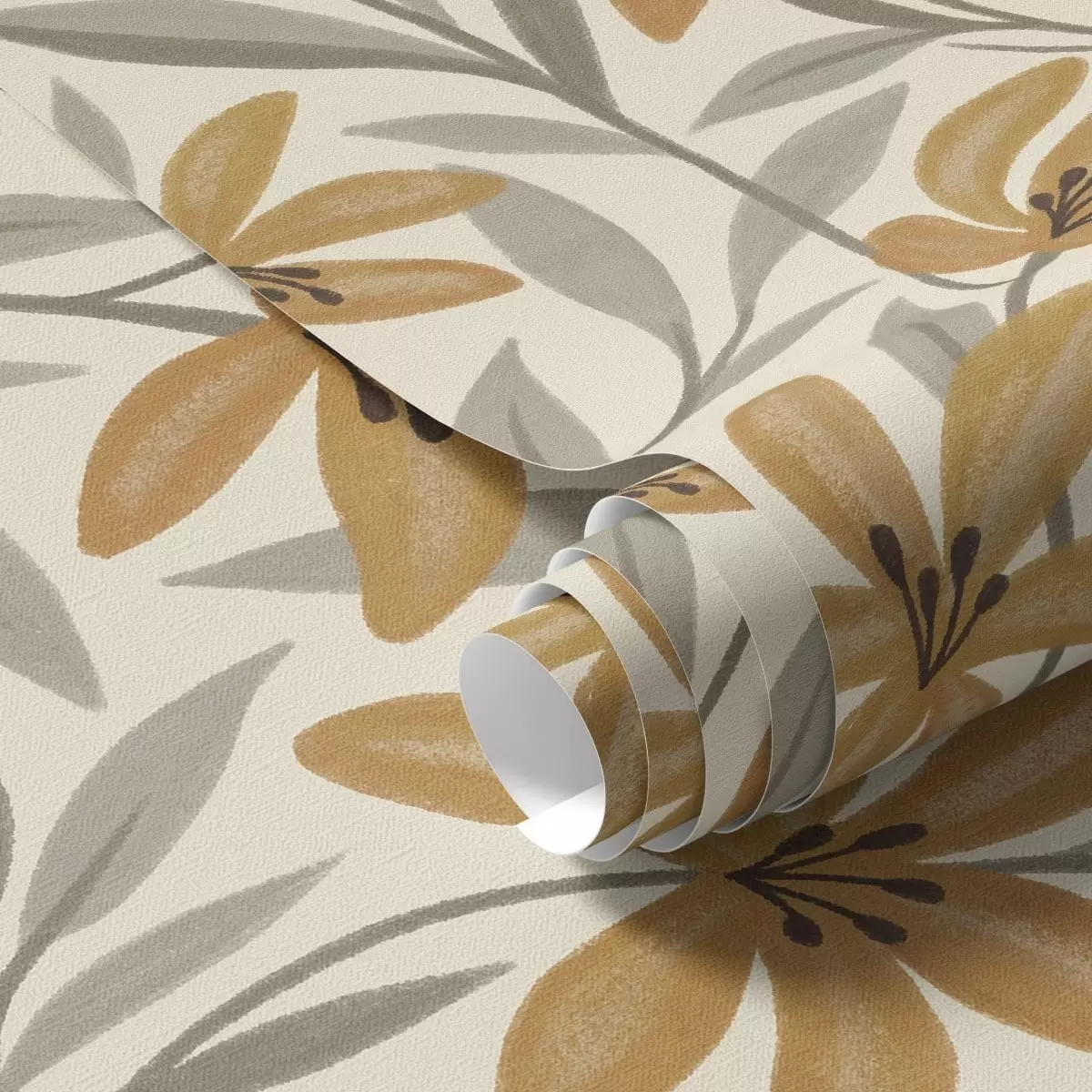 Tapete Gelbe Lilien und graugrüne Blätter auf hellem Hintergrund Nr. a00757