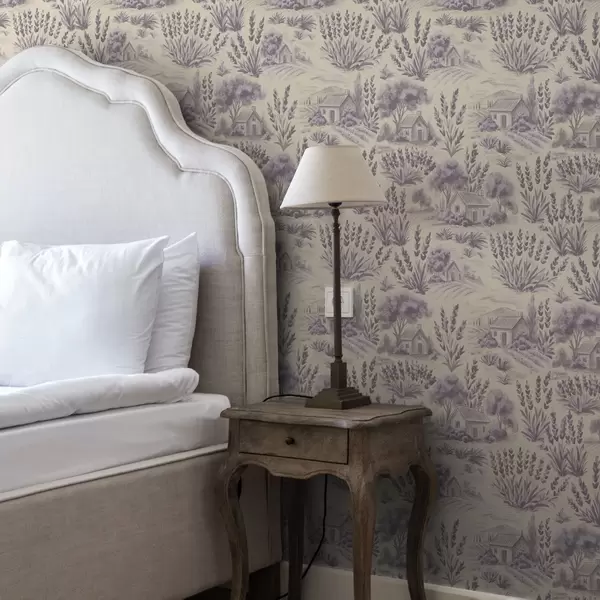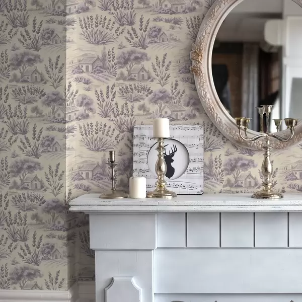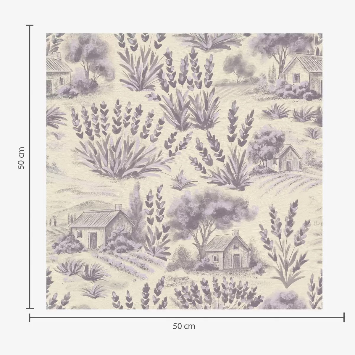 Tapete Lavendelfelder und Häuser in Pastelltönen Nr. a00765