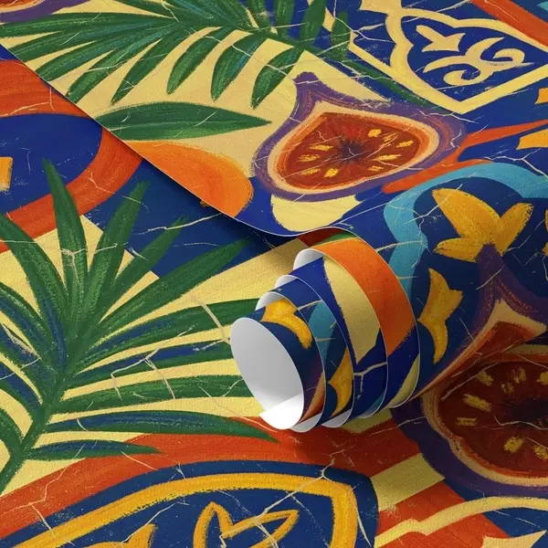 Tapete Leuchtende Orangen, Palmblätter und marokkanische Bögen Nr. a00767