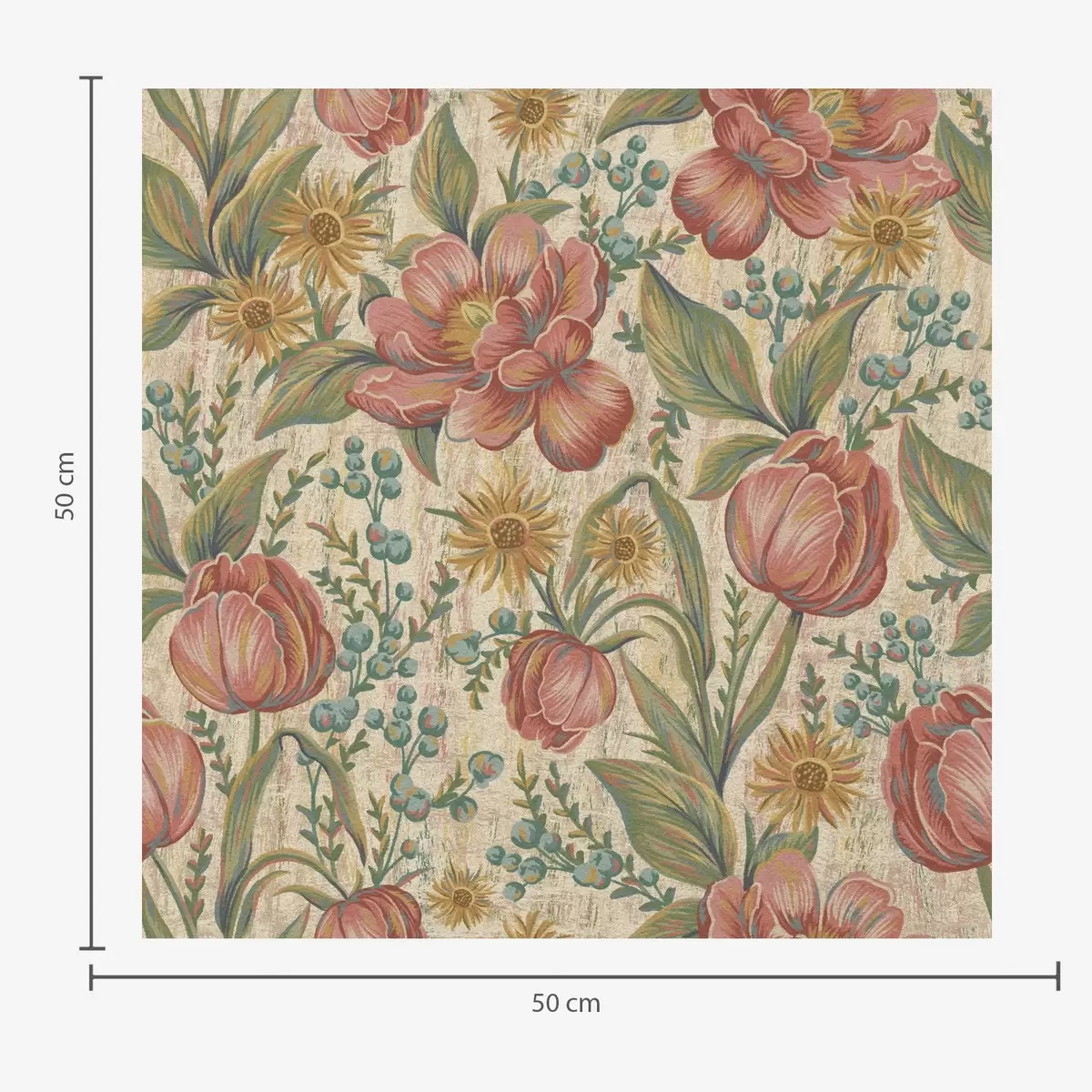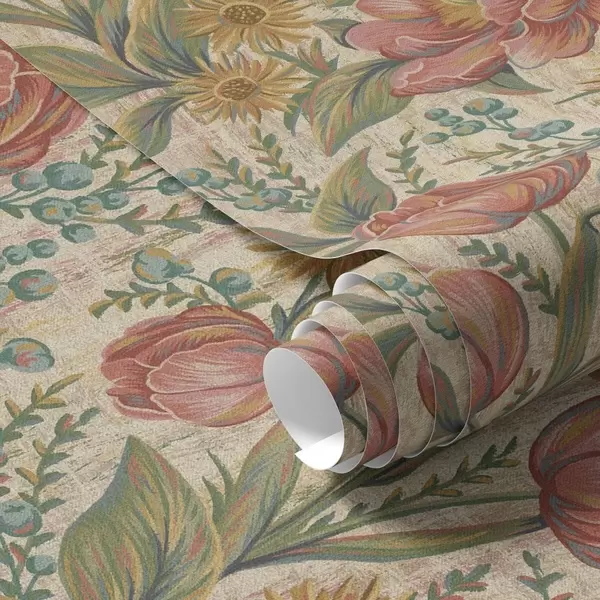 Tapete Vintage-Tulpen und Astern, strukturierter cremefarbener Hintergrund Nr. a00773