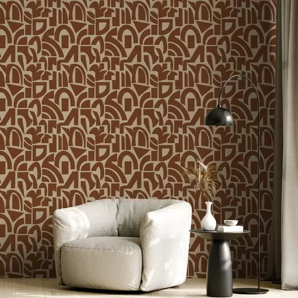Tapete Geometrische Formen aus Terrakotta auf Leinen Nr. a00774