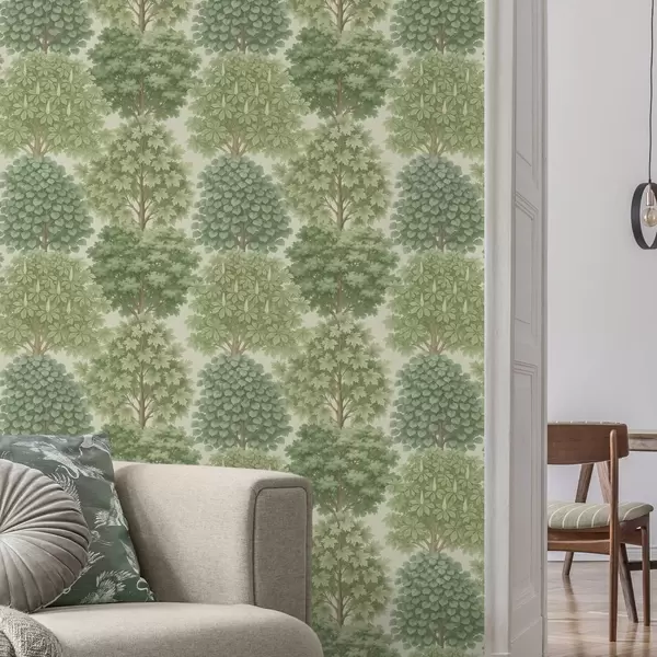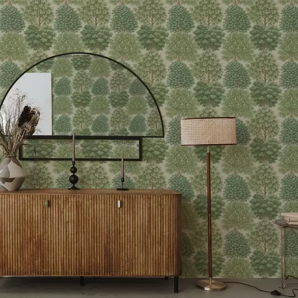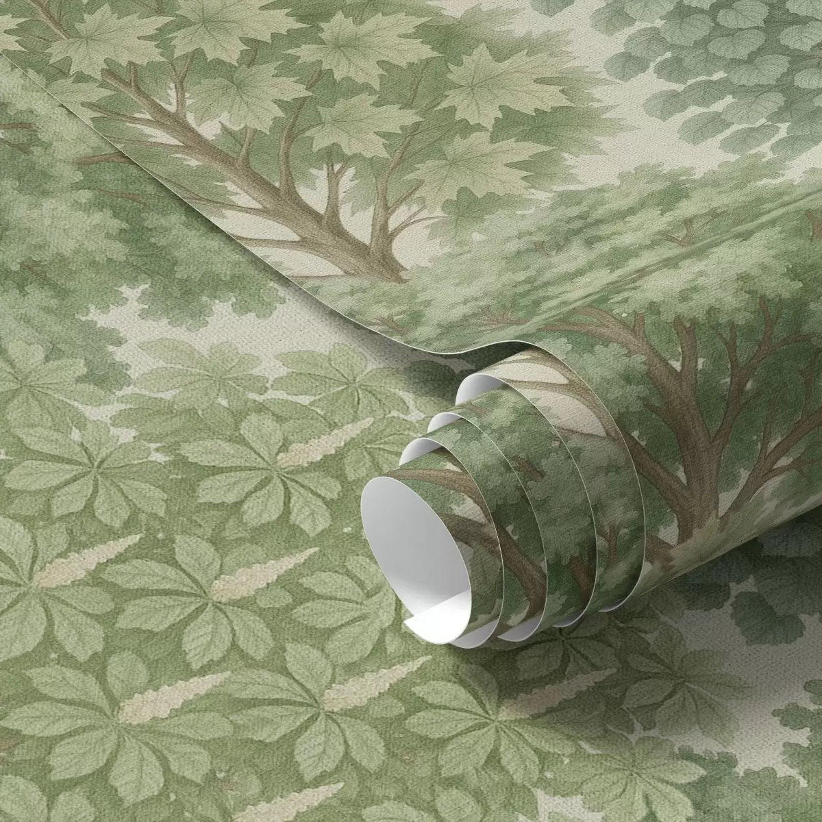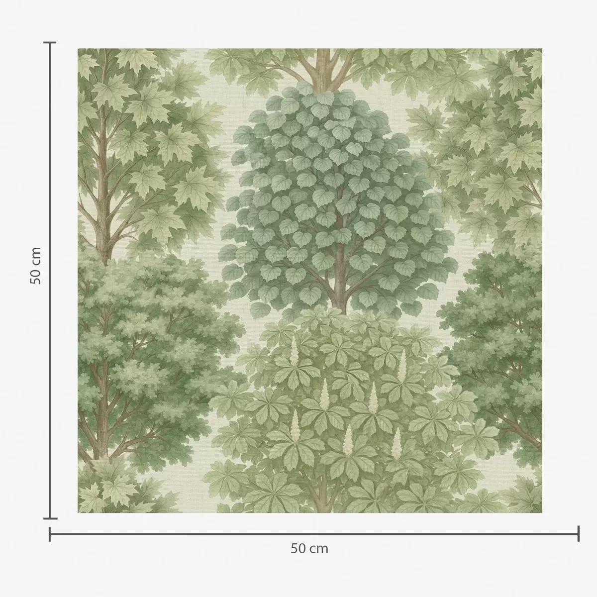 Tapete Baumgarten in sanften Grüntönen auf hellem Untergrund Nr. a00775