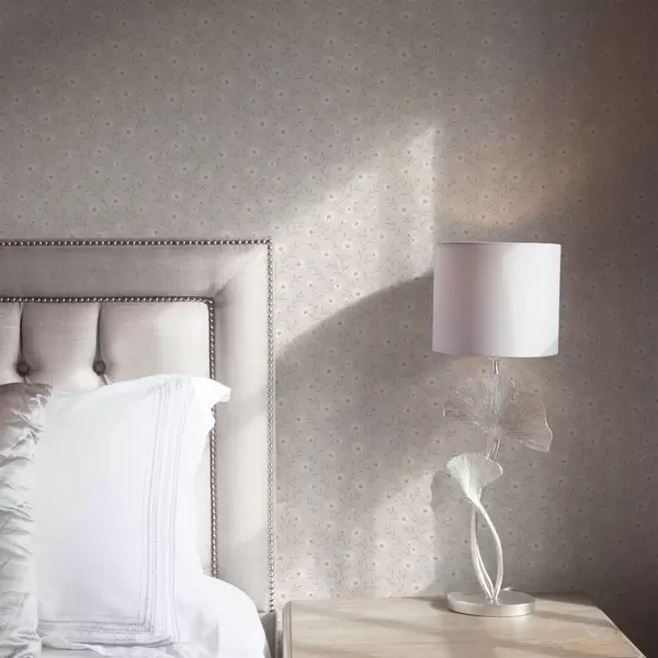 Tapete Winzige Gänseblümchen auf Zweigen, warmes Beige Nr. a00777