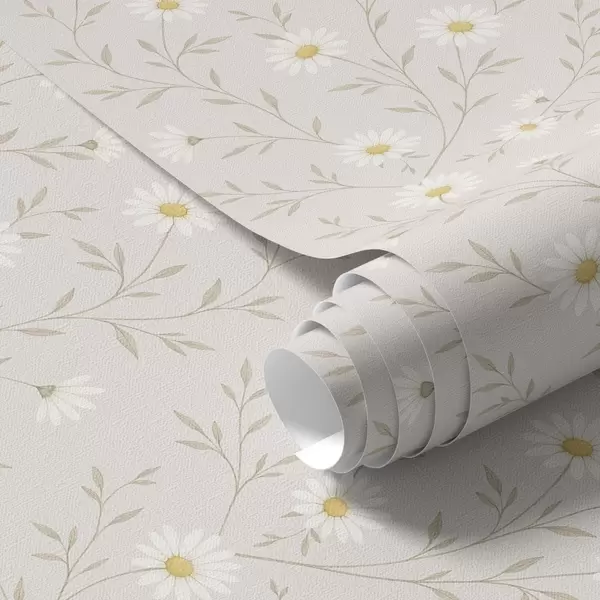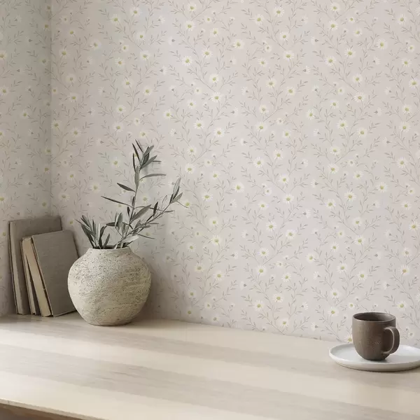 Tapete Winzige Gänseblümchen auf Zweigen, warmes Beige Nr. a00777