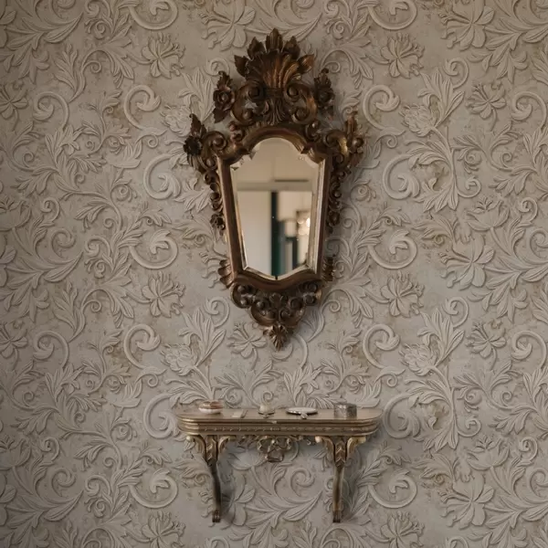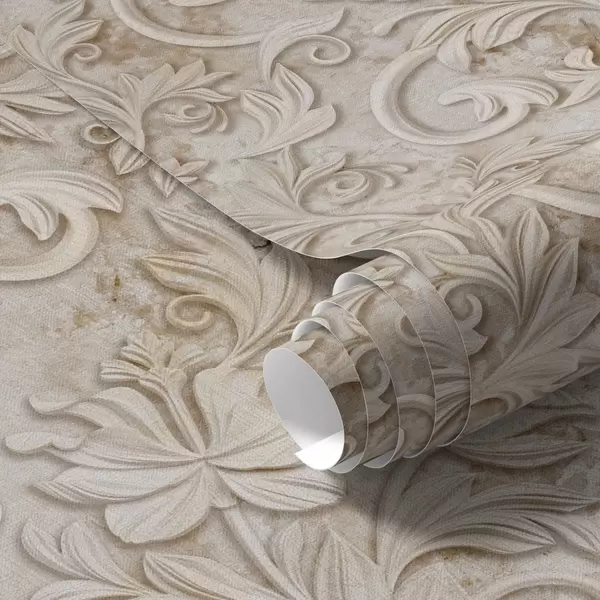 Tapete Steinrelief mit floralen Schnörkeln, Vintage-Beige Nr. a00784