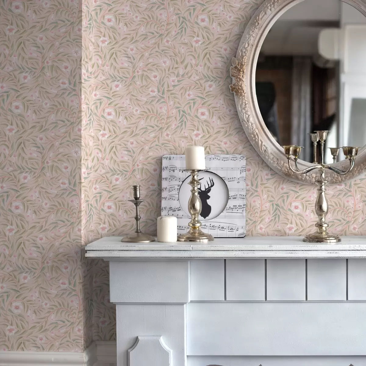 Tapete Zarte rosa Blüten und weiche Blätter auf pastellfarbenem Hintergrund Nr. a00788