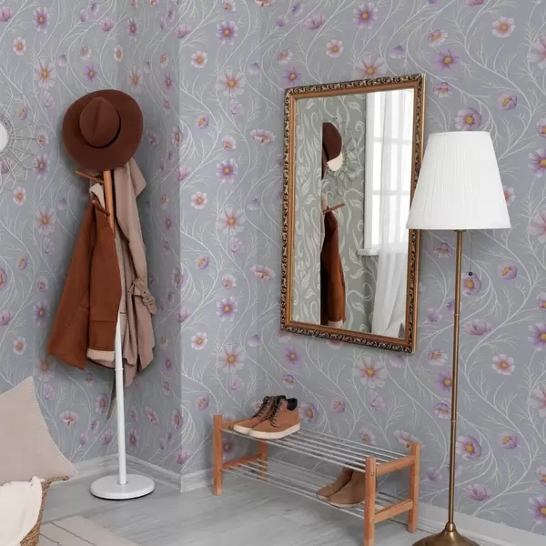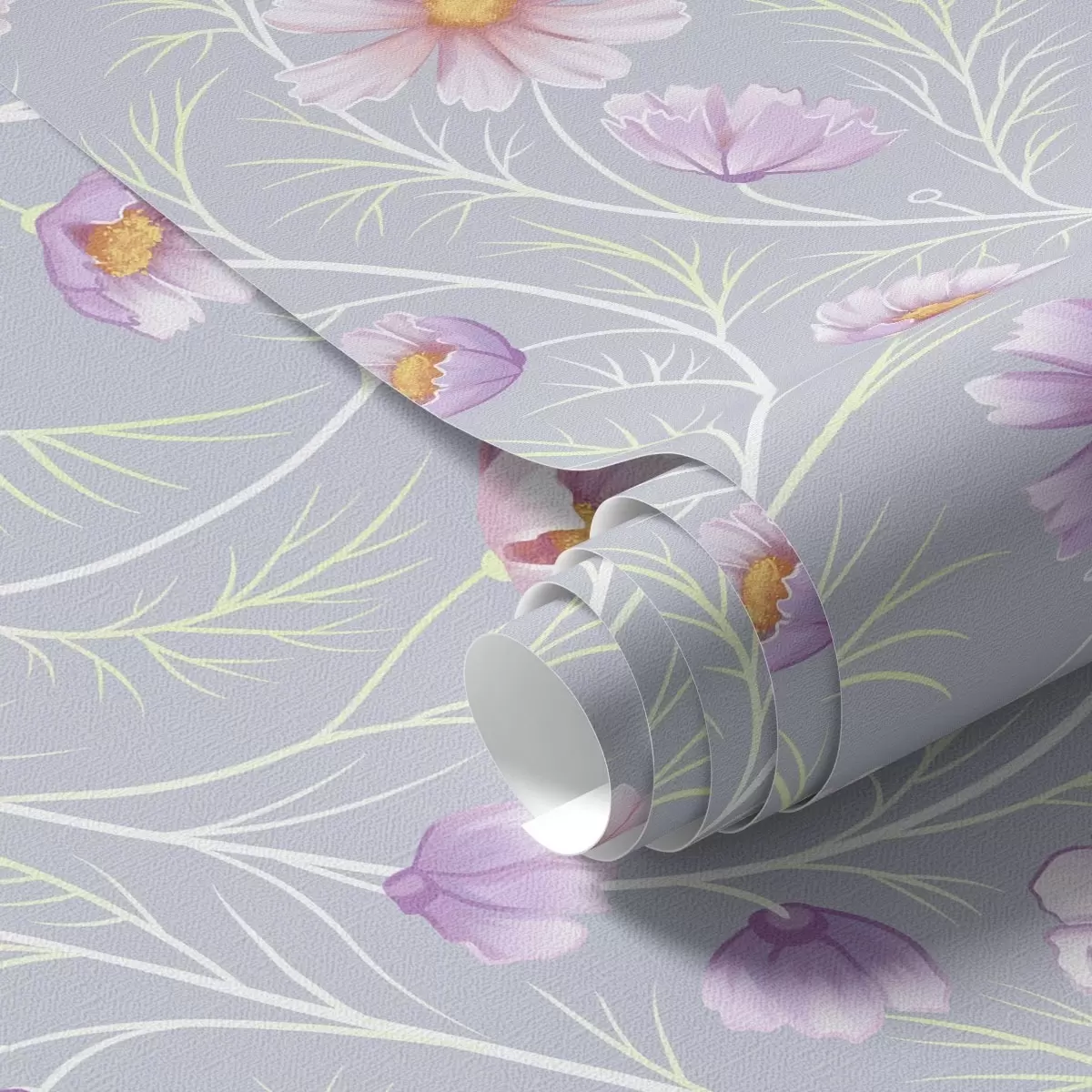 Tapete Rosa Kosmos und schlanke Stiele auf grauem Hintergrund Nr. a00791
