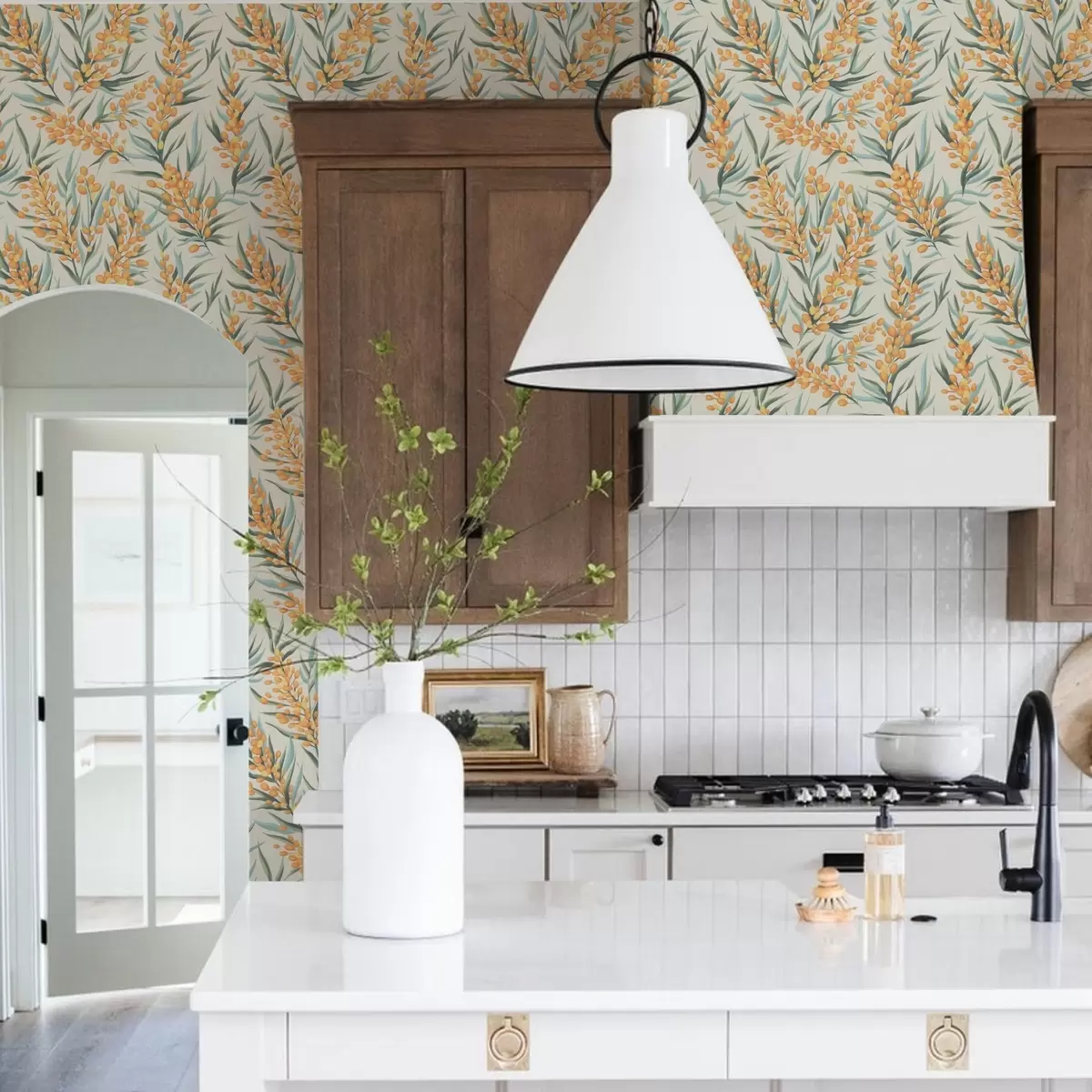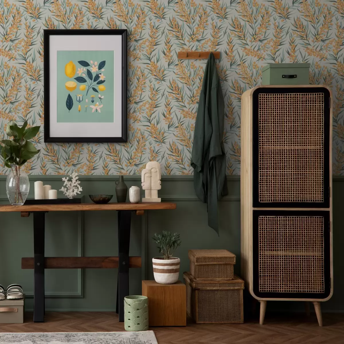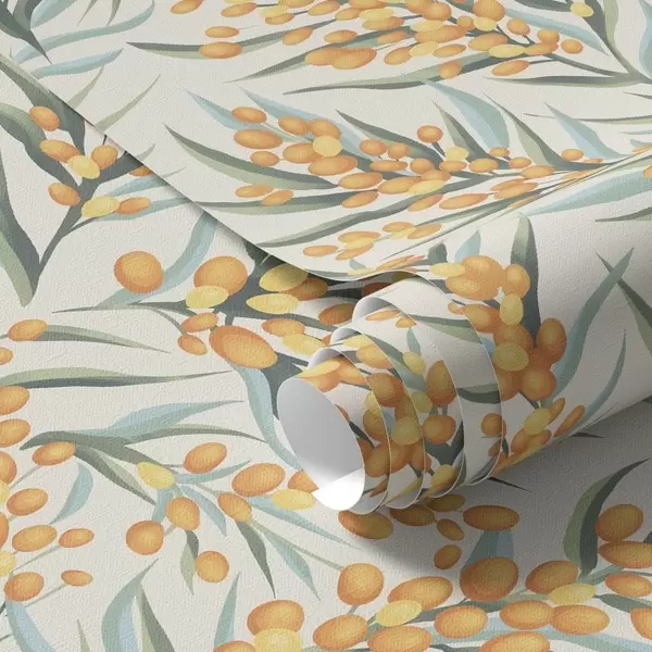Tapete Sanddornzweige mit orangefarbenen Beeren, heller Hintergrund Nr. a00792