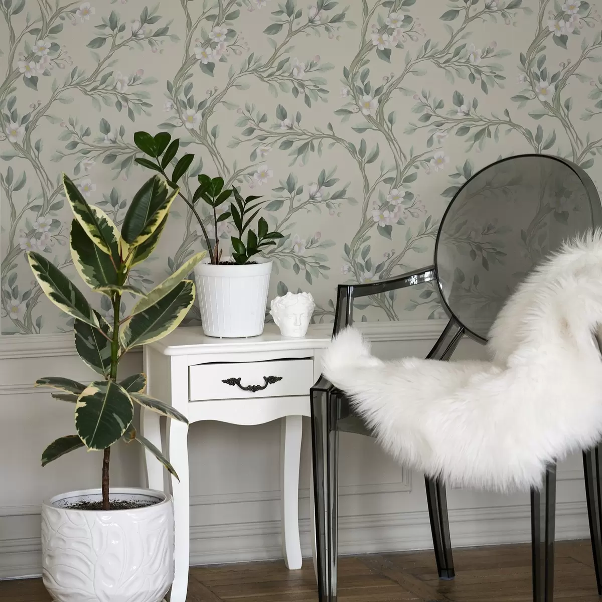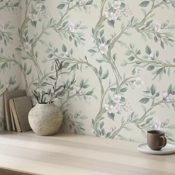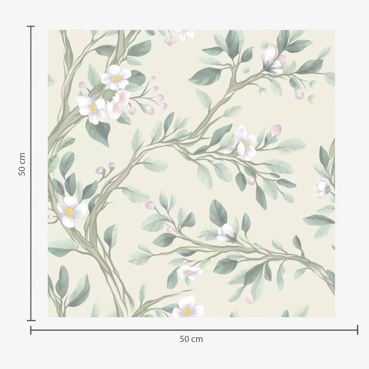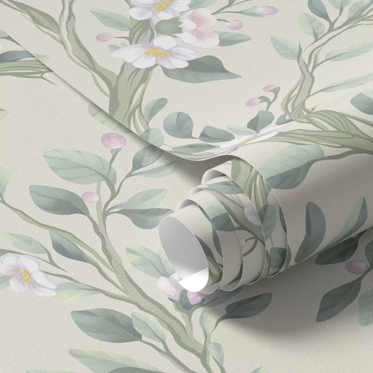 Tapete Zarte blühende Zweige auf cremefarbenem Hintergrund, Pastellfarben Nr. a00793