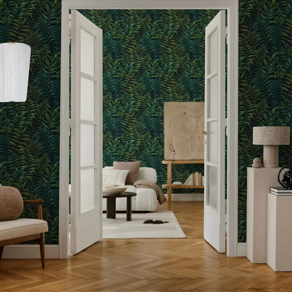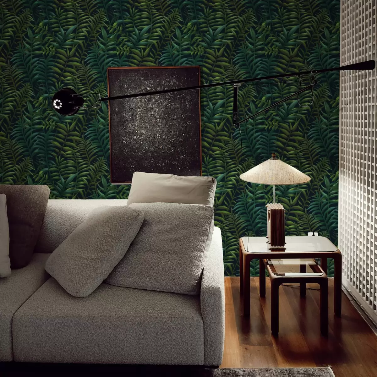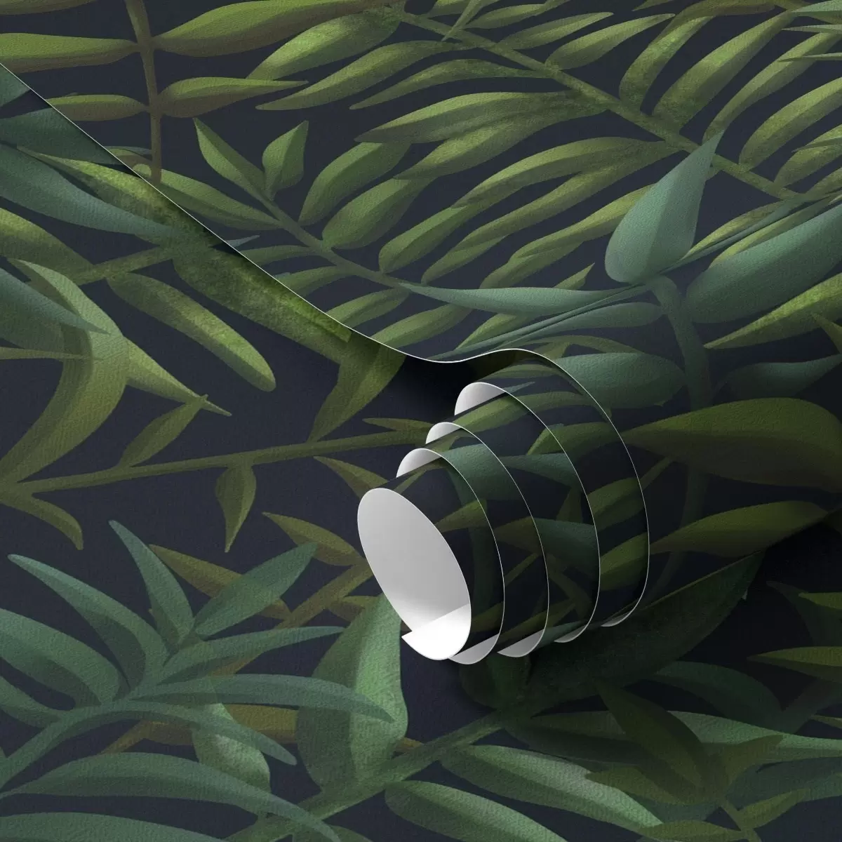 Tapete Dunkle tropische Blätter vor einem dunklen Hintergrund Nr. a00794