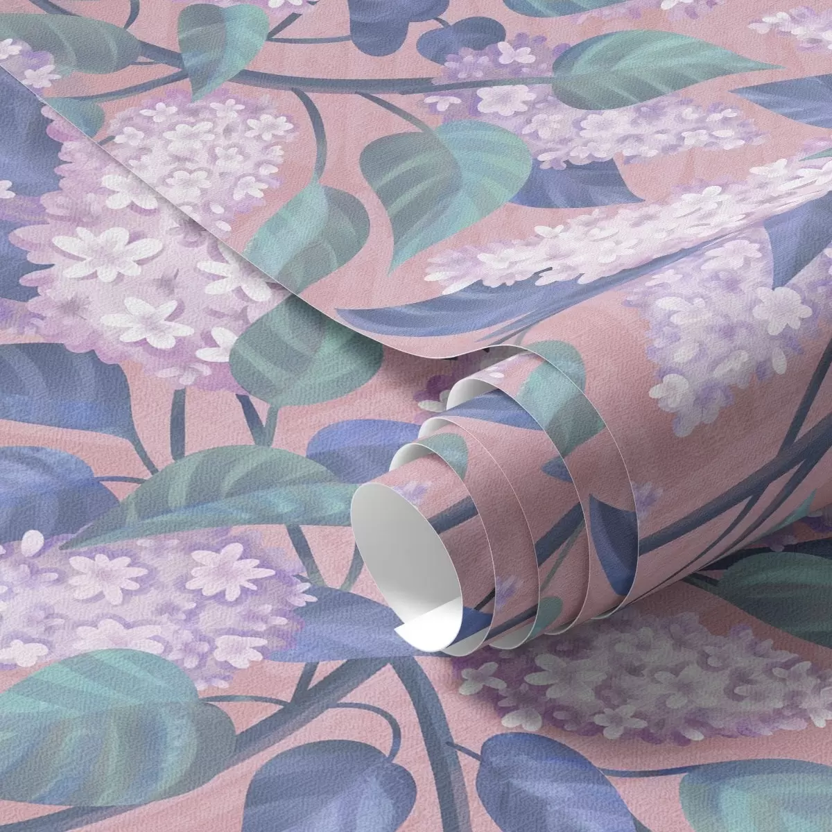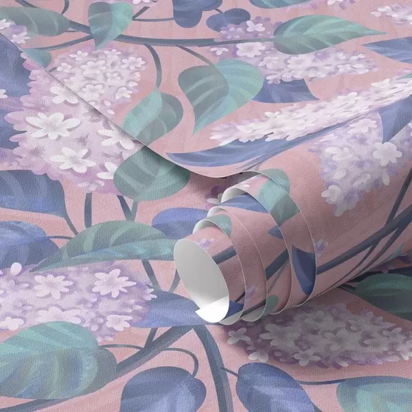 Tapete Zarte lila Blüten auf rosa Hintergrund, Frühlingsstimmung Nr. a00797