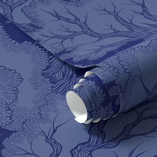 Tapete Silhouetten von Bäumen unter einem Sternenhimmel in Blautönen Nr. a00798