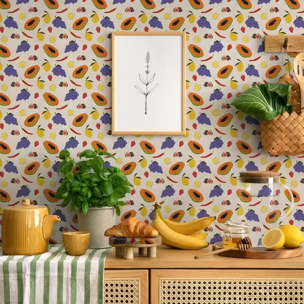 Tapete Papaya, Trauben und Zitronen – eine bunte Fruchtmischung Nr. a00803