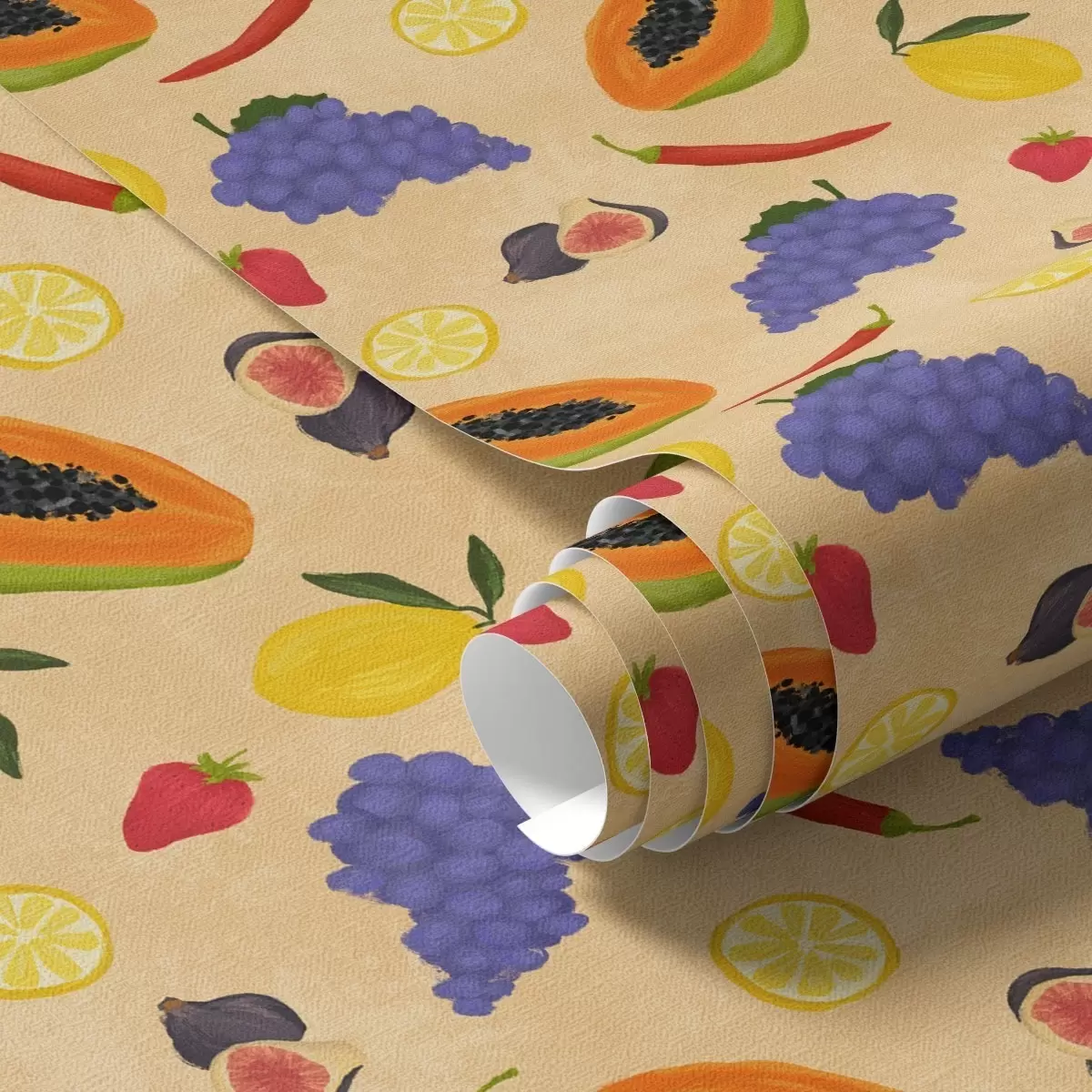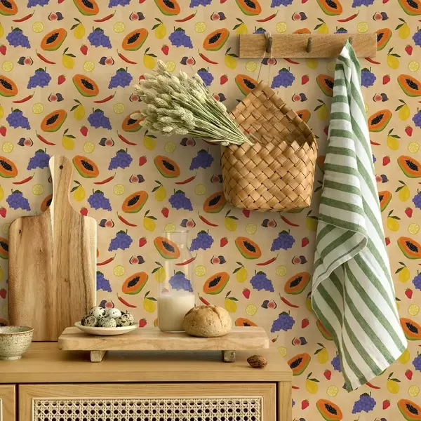 Tapete Papaya, Zitrusfrüchte und Beeren auf einem satten, warmen Hintergrund Nr. a00803v1