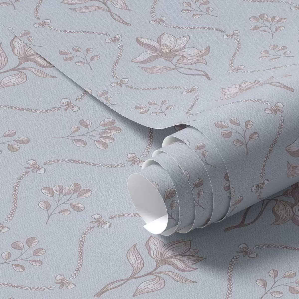 Tapete Kleine Blumen und Bänder in hellblauen Farbtönen Nr. a00808v1