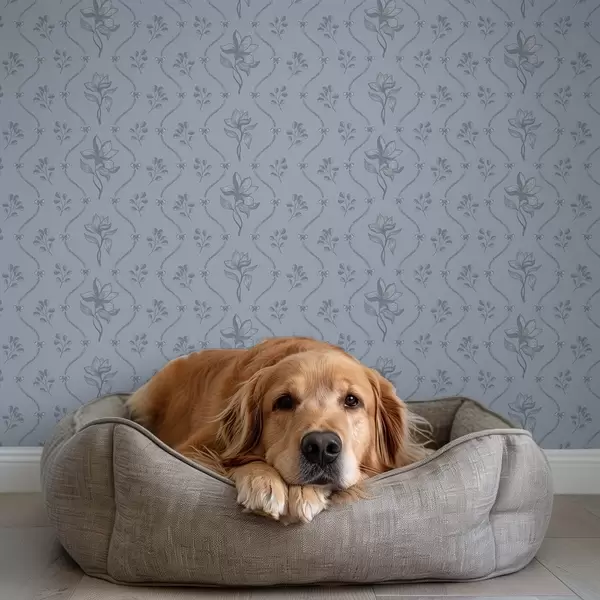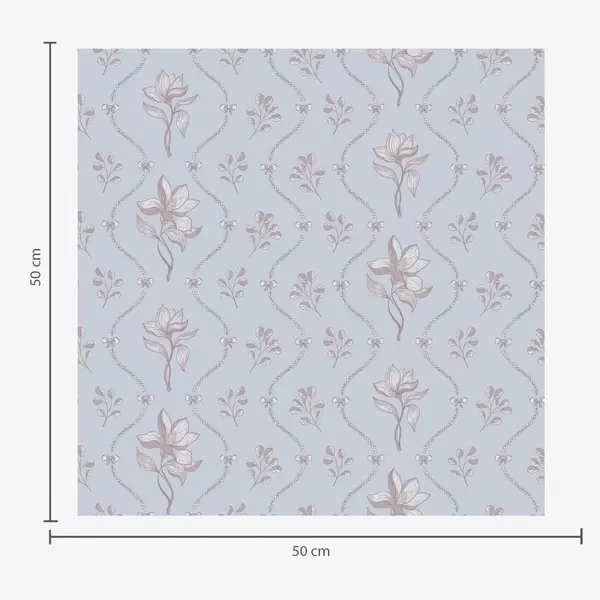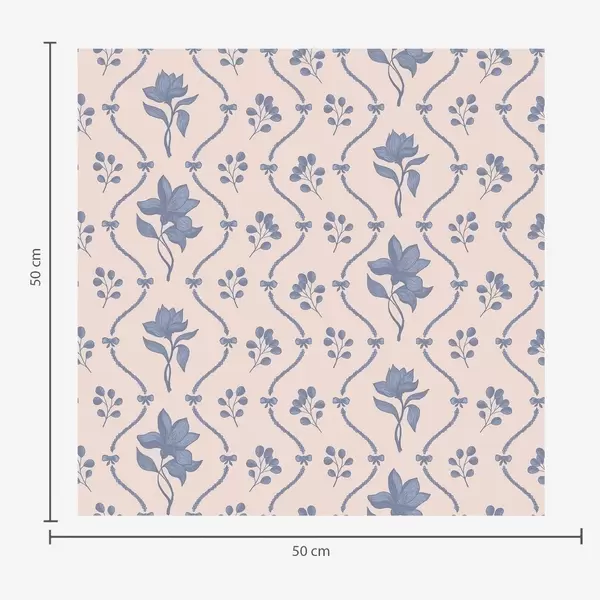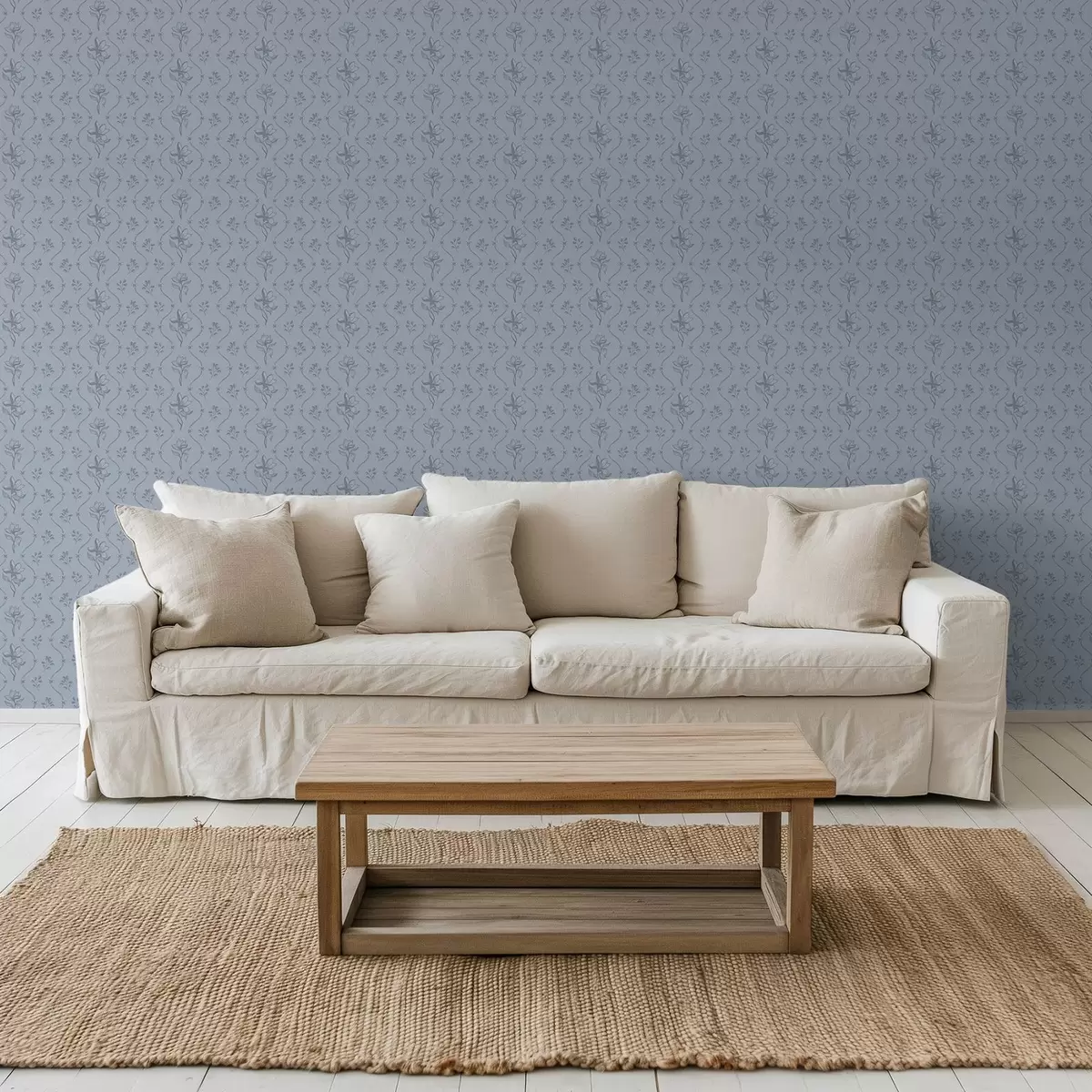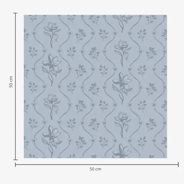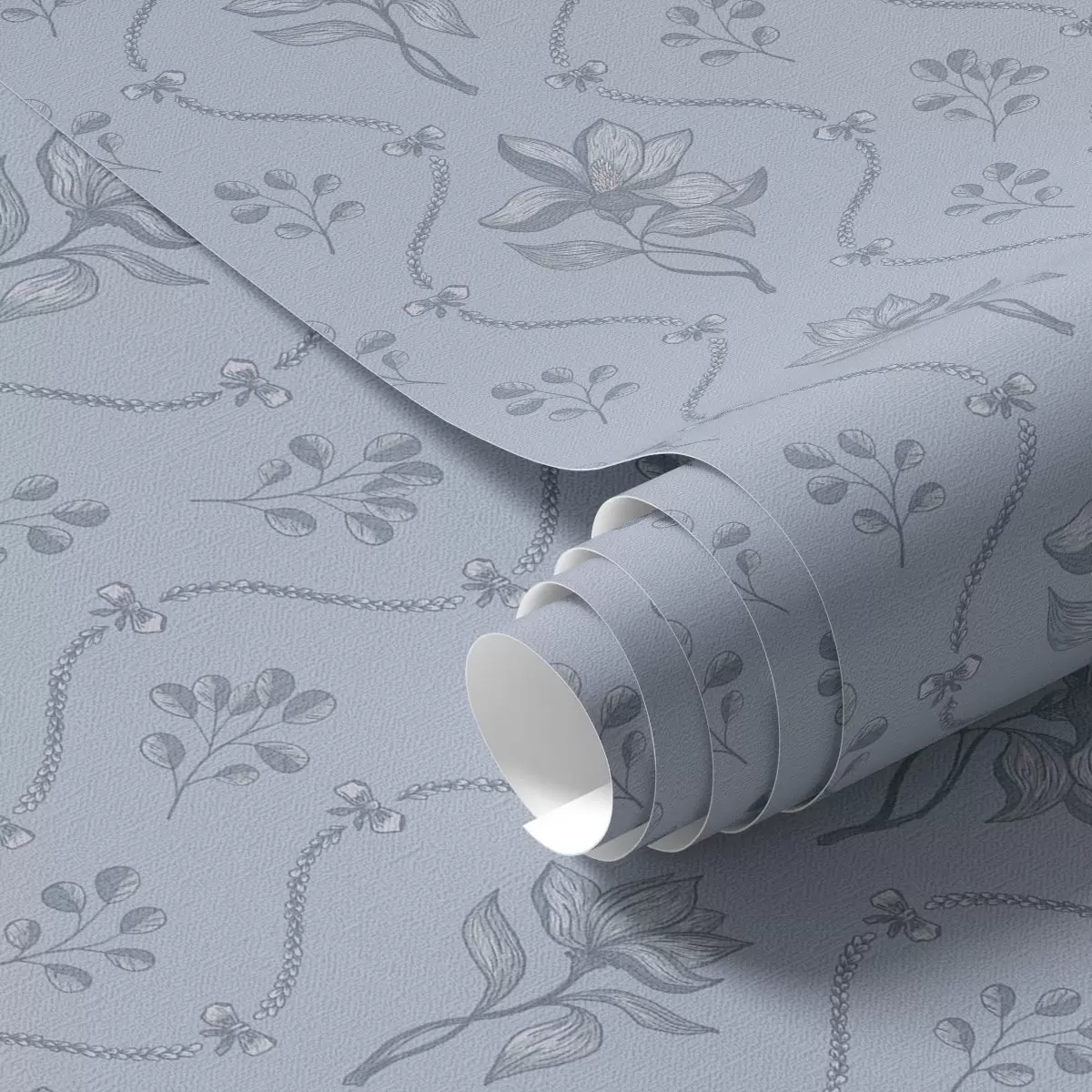 Tapete Kleine Blumen und Bänder in graublauer Farbpalette Nr. a00808v2