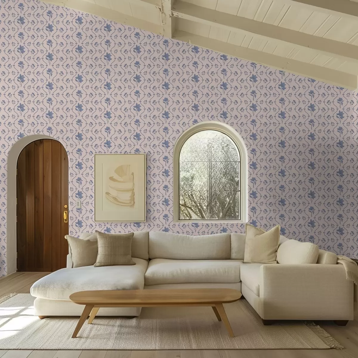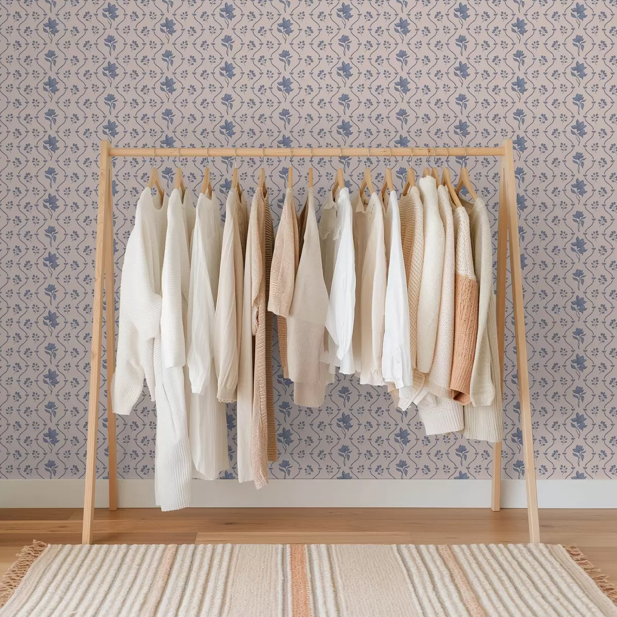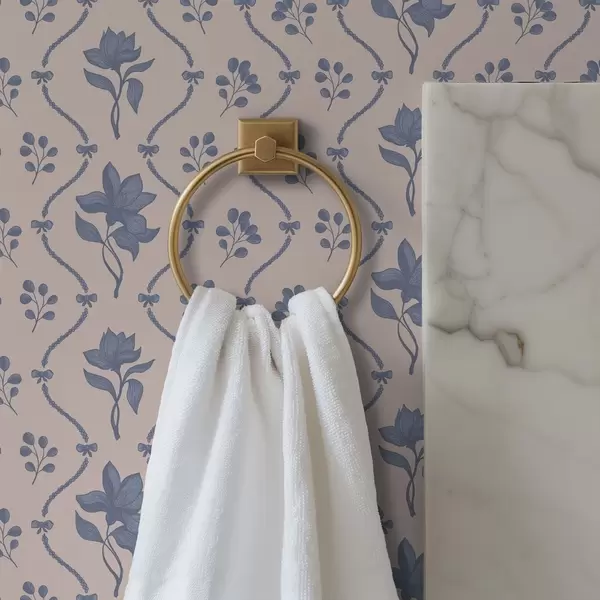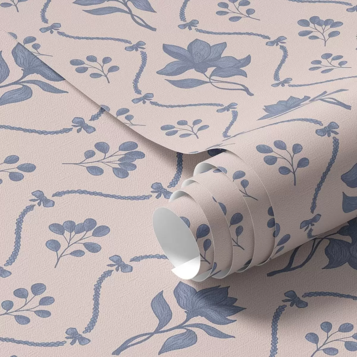 Tapete Kleine Blumen und Bänder in Blau- und Rosatönen Nr. a00808v3