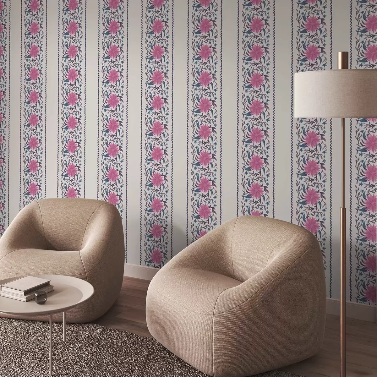 Tapete Vertikale Blumenstreifen in Rosa-Violett-Tönen Nr. a00810