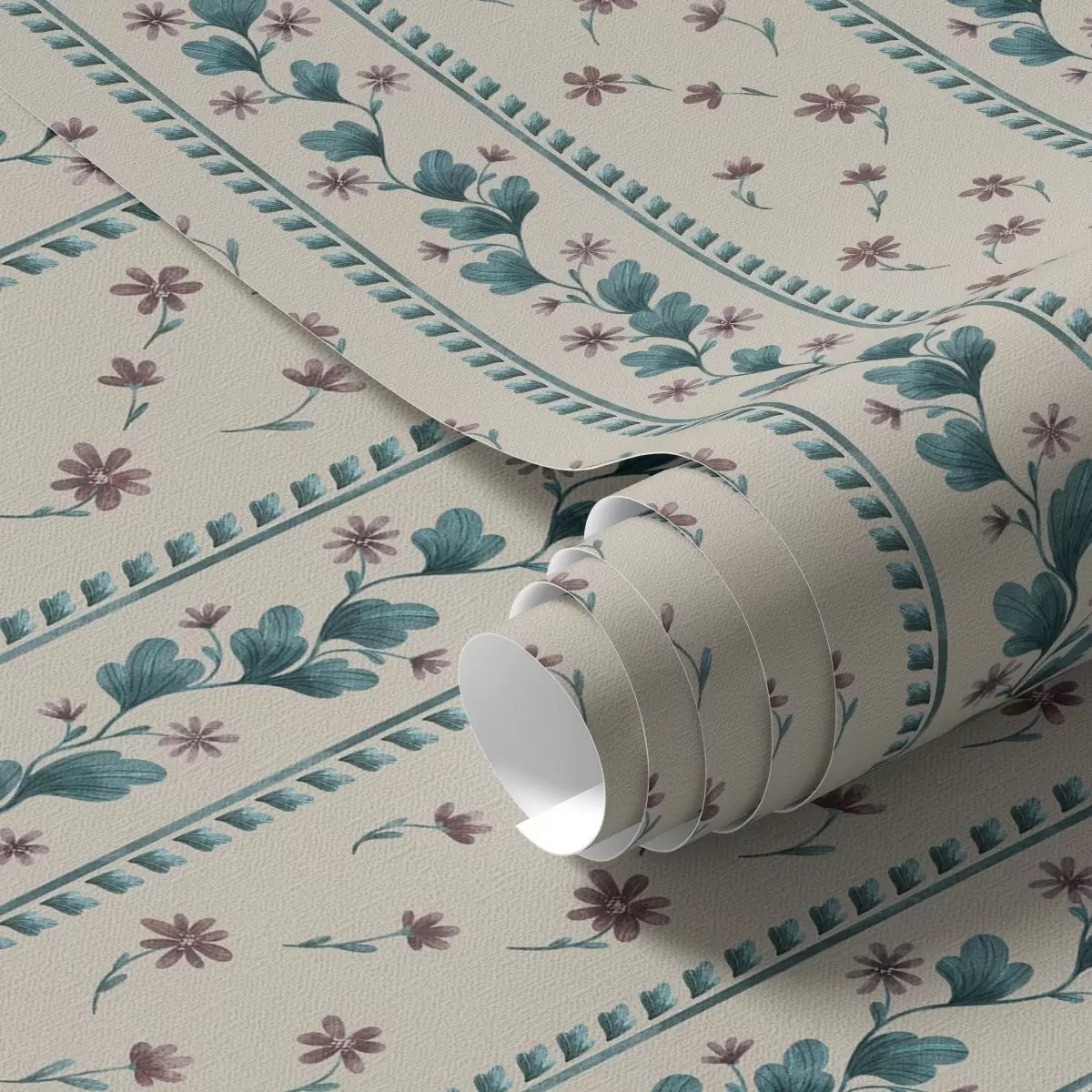 Tapete Vertikale Blumenstreifen in Blau-Brauntönen Nr. a00811v1