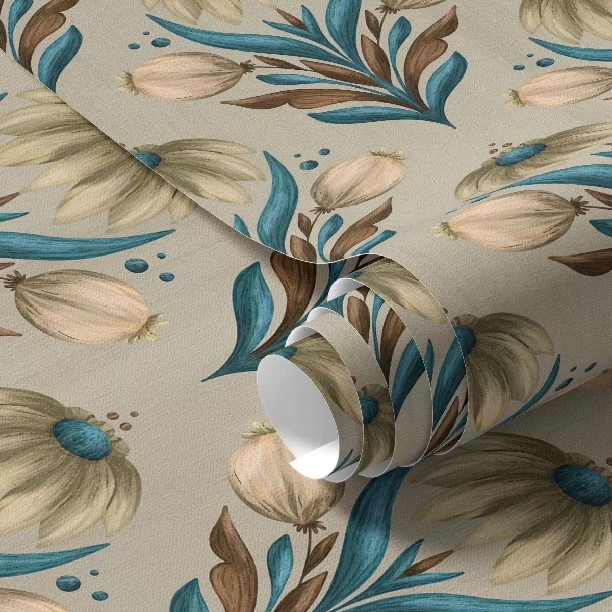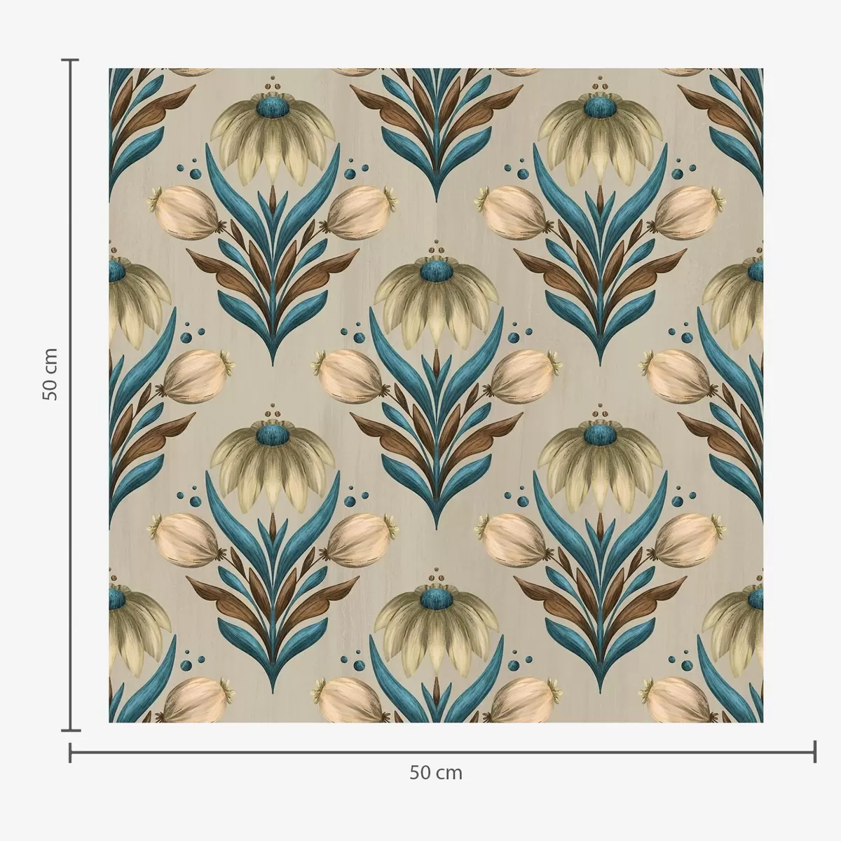 Tapete Symmetrisches Blumenornament in warmen Farbtönen Nr. a00812
