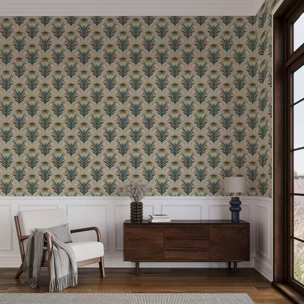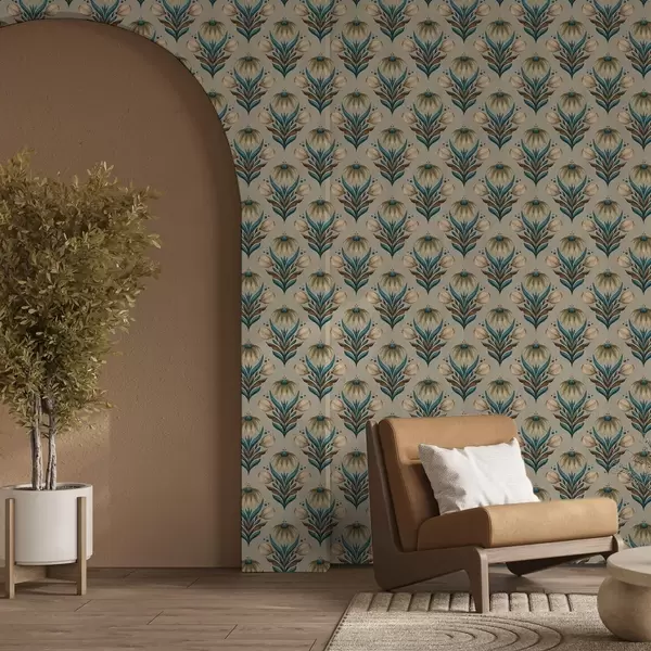 Tapete Symmetrisches Blumenornament in warmen Farbtönen Nr. a00812
