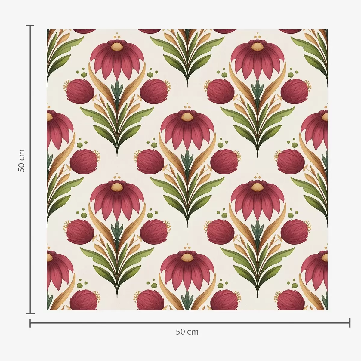 Tapete Symmetrisches Blumenornament in satten Rot-Grün-Tönen Nr. a00812v4