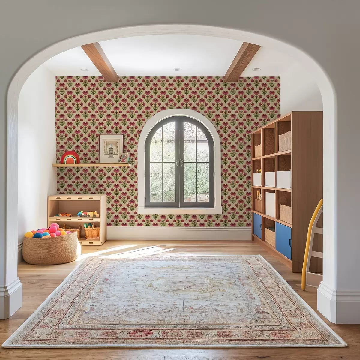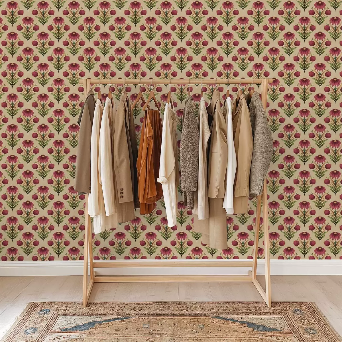 Tapete Symmetrisches Blumenornament auf warmem beigem Hintergrund Nr. a00812v6