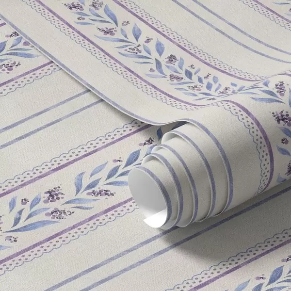 Tapete Vertikale Streifen mit Lavendelgirlanden, beiger Hintergrund Nr. a00813v1