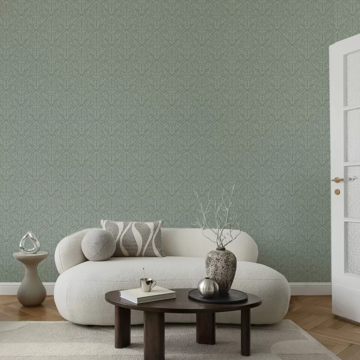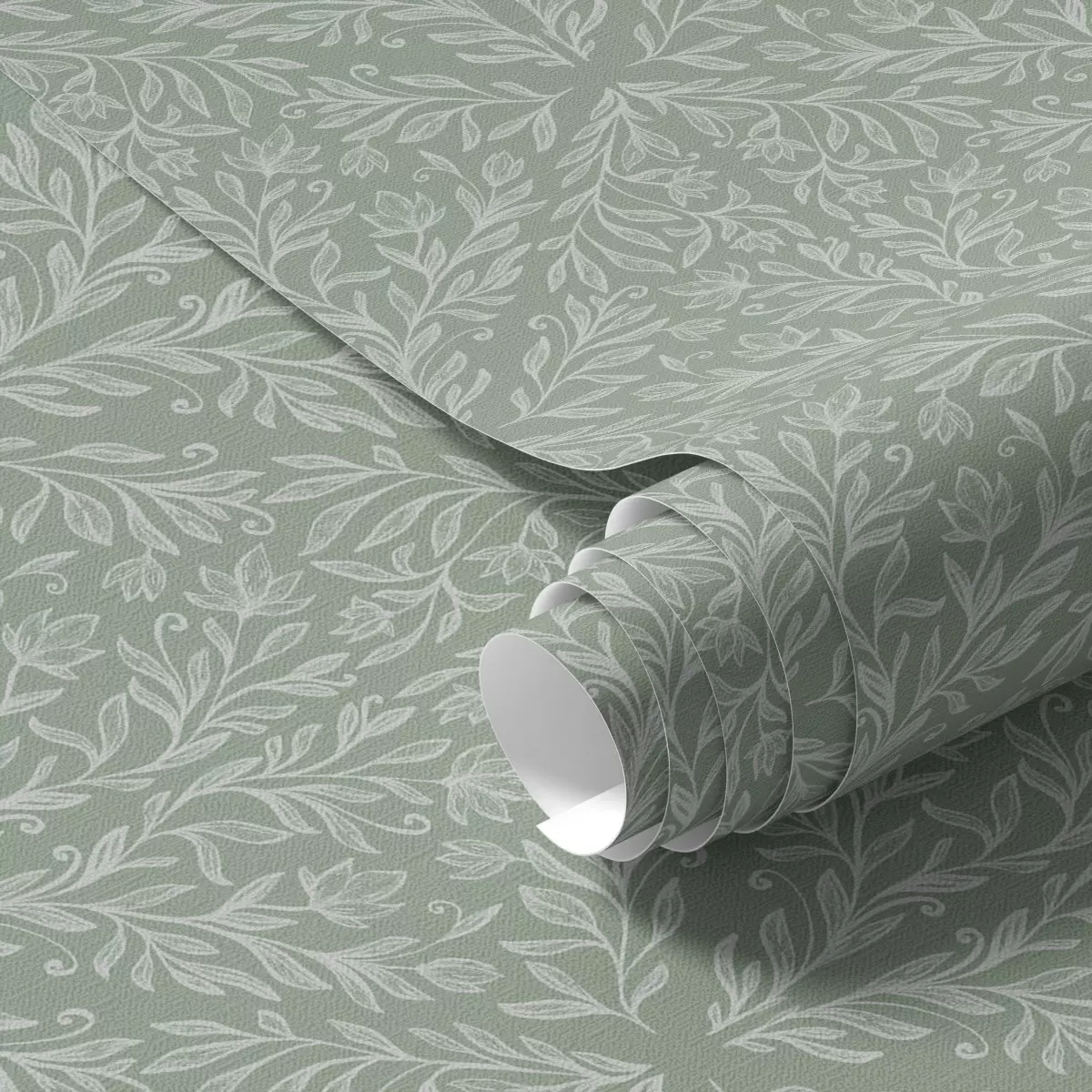 Tapete Botanischer Damast auf mint-olivem Hintergrund Nr. a00815