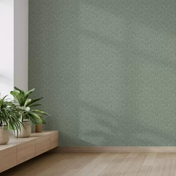 Tapete Feiner botanischer Damast in gedecktem Grün Nr. a00815v1