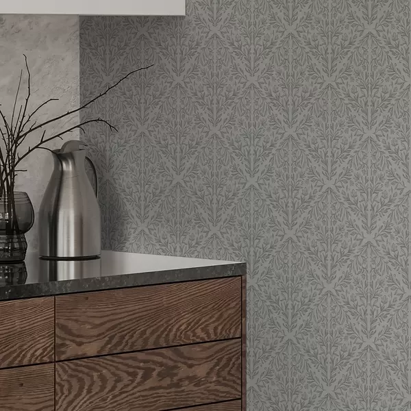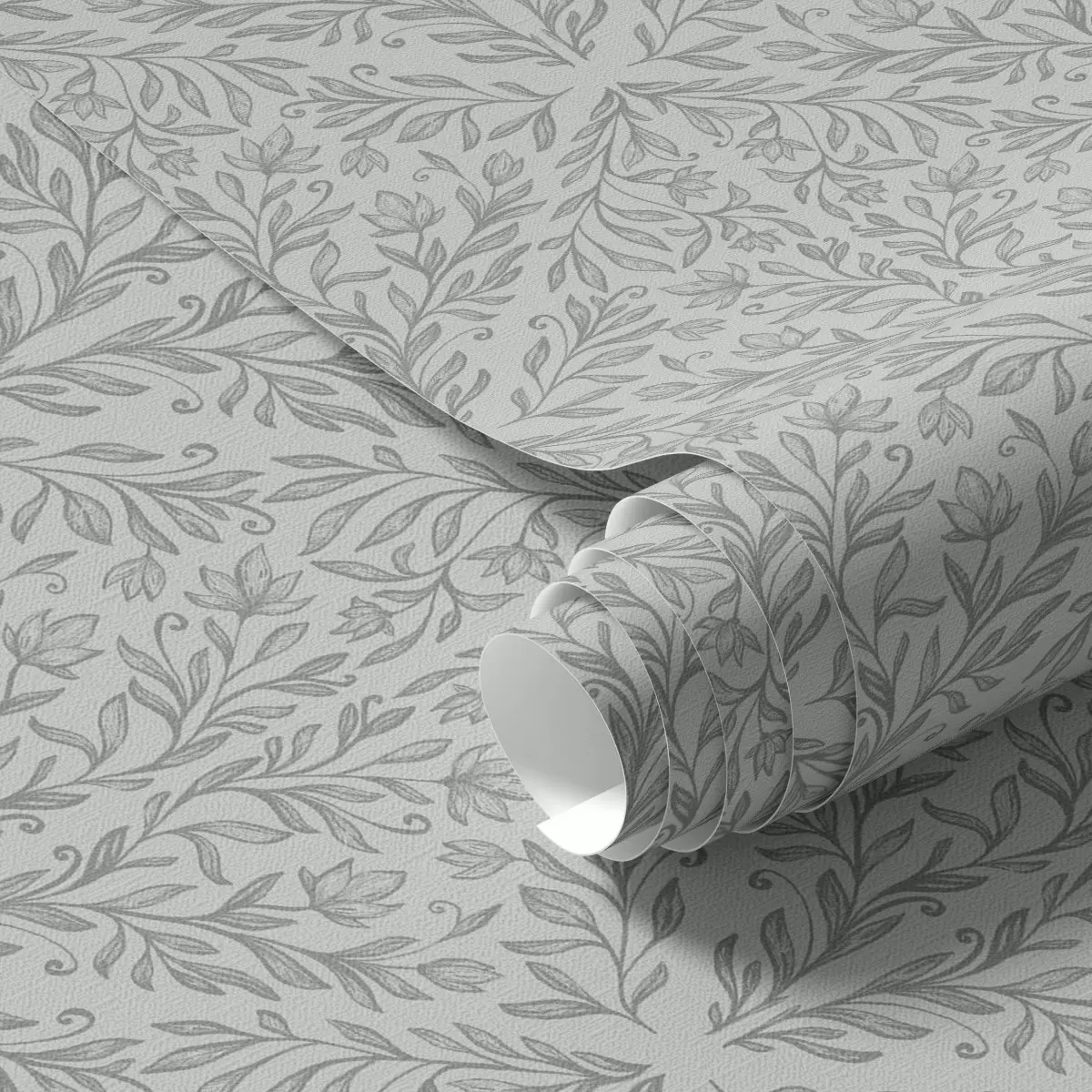 Tapete Botanischer Damast in Hellgrau mit weichen Konturen Nr. a00815v2